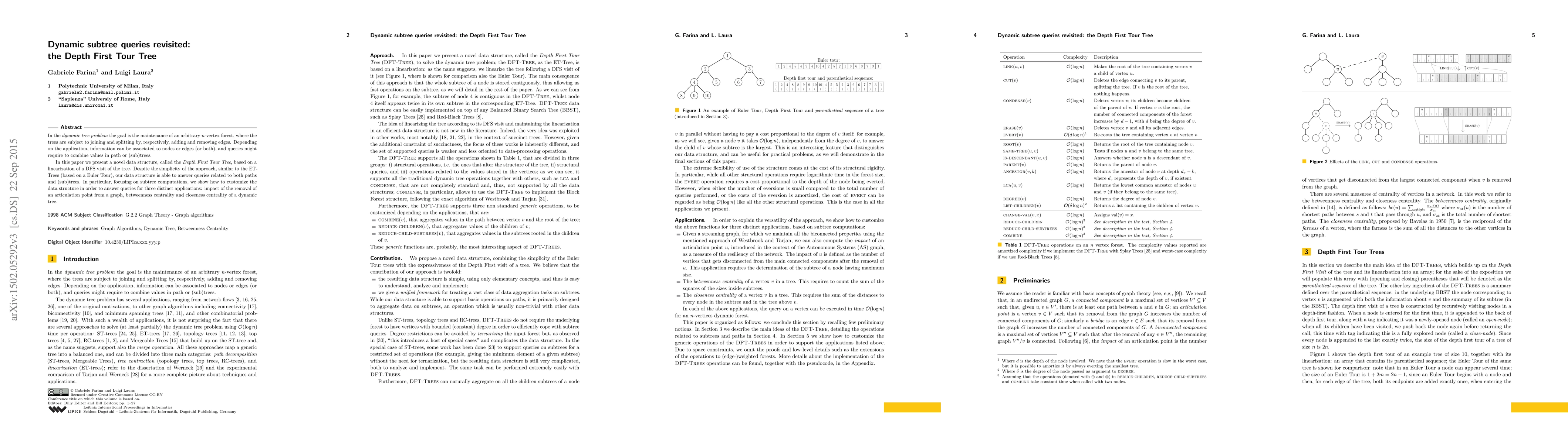 This paper introduces the Depth First Tour Tree, a novel data structure for dynamic tree management, enabling efficient queries on paths and subtrees. It customizes this linearization of DFS visits to address applications like the impact of articulation point removal, and centrality measures in dynamic forests.