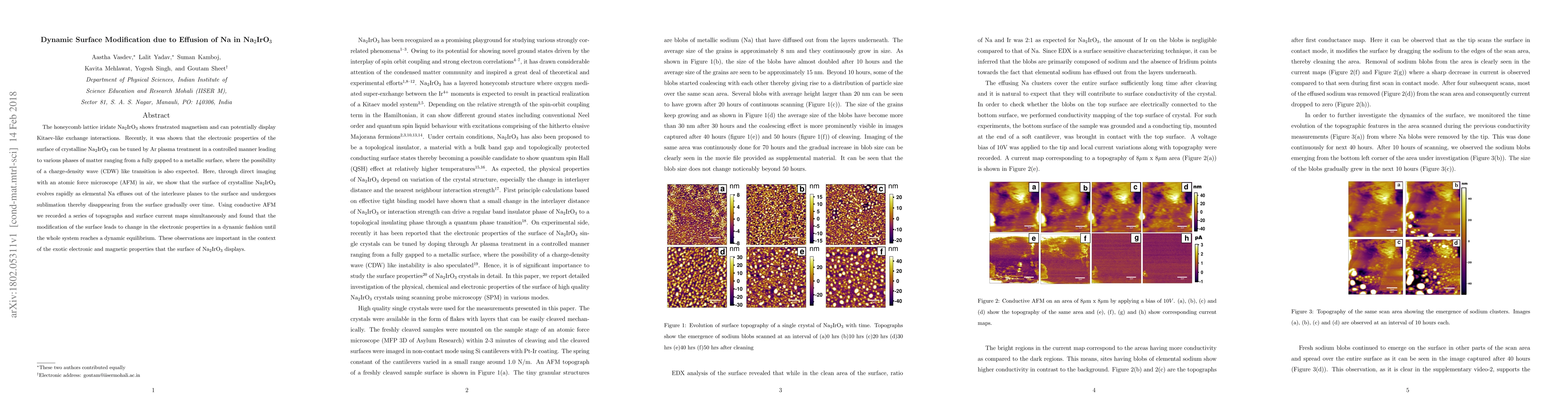 The surface of Na$_2$IrO$_3$ undergoes dynamic modification as Na effuses and sublimates, changing electronic properties over time until reaching a dynamic equilibrium, as observed via atomic force microscopy. These changes are significant for understanding the material's exotic electronic and magnetic behaviors.