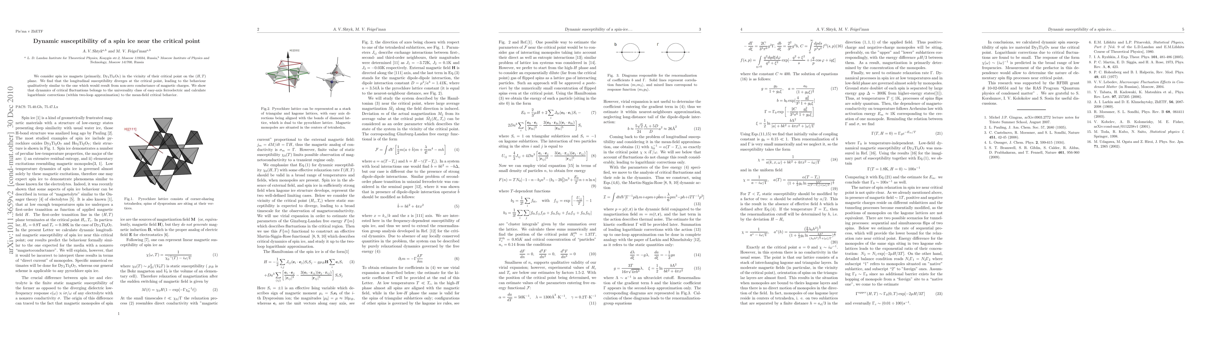 This study investigates the dynamic susceptibility of spin ice magnets near their critical point, revealing that longitudinal susceptibility diverges, mimicking magnetic charge conductance. The dynamics of critical fluctuations are classified under the universality of easy-axis ferroelectrics, with logarithmic corrections calculated using a two-loop approximation.