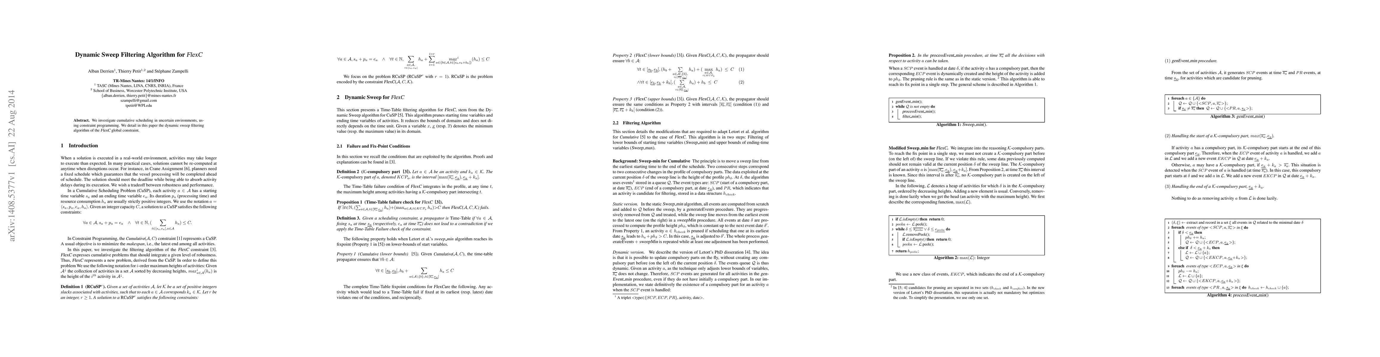 We investigate cumulative scheduling in uncertain environments, using constraint programming. We detail in this paper the dynamic sweep filtering algorithm of the FlexC global constraint.