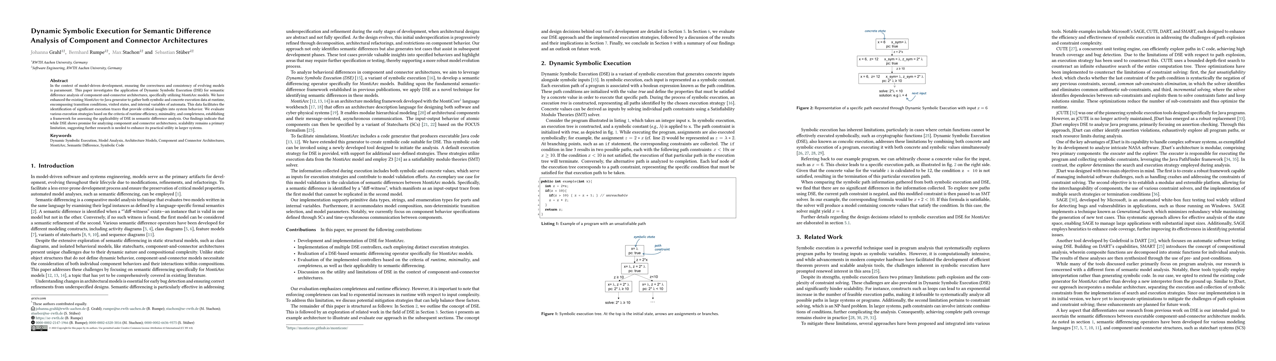 In the context of model-driven development, ensuring the correctness and consistency of evolving models is paramount. This paper investigates the application of Dynamic Symbolic Execution (DSE) for semantic difference analysis of component-and-connector architectures, specifically utilizing MontiArc models. We have enhanced the existing MontiArc-to-Java generator to gather both symbolic and concrete execution data at runtime, encompassing transition conditions, visited states, and internal variables of automata. This data facilitates the identification of significant execution traces that provide critical insights into system behavior. We evaluate various execution strategies based on the criteria of runtime efficiency, minimality, and completeness, establishing a framework for assessing the applicability of DSE in semantic difference analysis. Our findings indicate that while DSE shows promise for analyzing component and connector architectures, scalability remains a primary limitation, suggesting further research is needed to enhance its practical utility in larger systems.