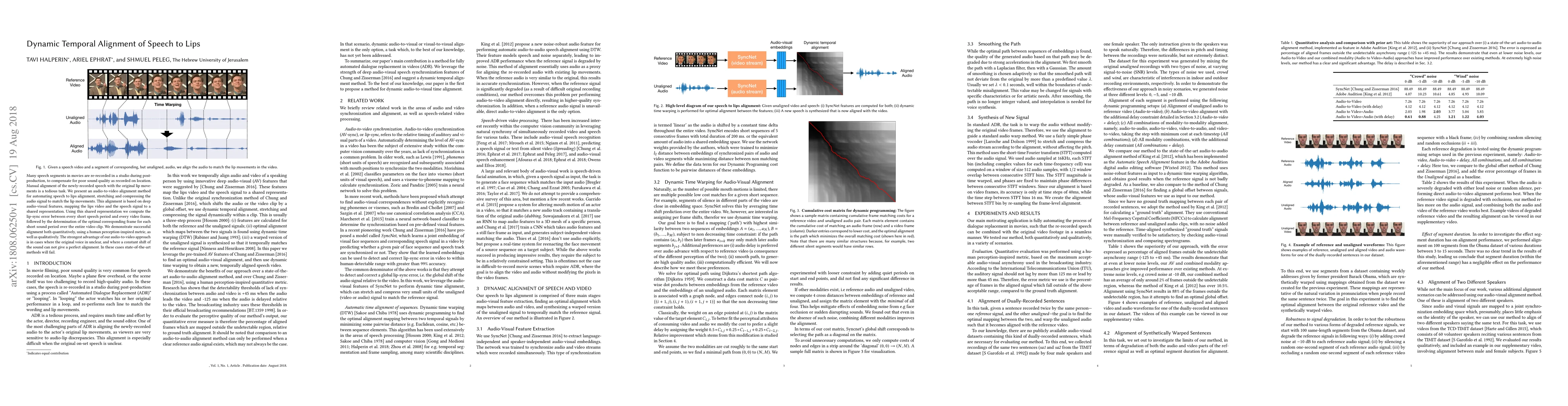 Many speech segments in movies are re-recorded in a studio during postproduction, to compensate for poor sound quality as recorded on location. Manual alignment of the newly-recorded speech with the original lip movements is a tedious task. We present an audio-to-video alignment method for automating speech to lips alignment, stretching and compressing the audio signal to match the lip movements. This alignment is based on deep audio-visual features, mapping the lips video and the speech signal to a shared representation. Using this shared representation we compute the lip-sync error between every short speech period and every video frame, followed by the determination of the optimal corresponding frame for each short sound period over the entire video clip. We demonstrate successful alignment both quantitatively, using a human perception-inspired metric, as well as qualitatively. The strongest advantage of our audio-to-video approach is in cases where the original voice in unclear, and where a constant shift of the sound can not give a perfect alignment. In these cases state-of-the-art methods will fail.