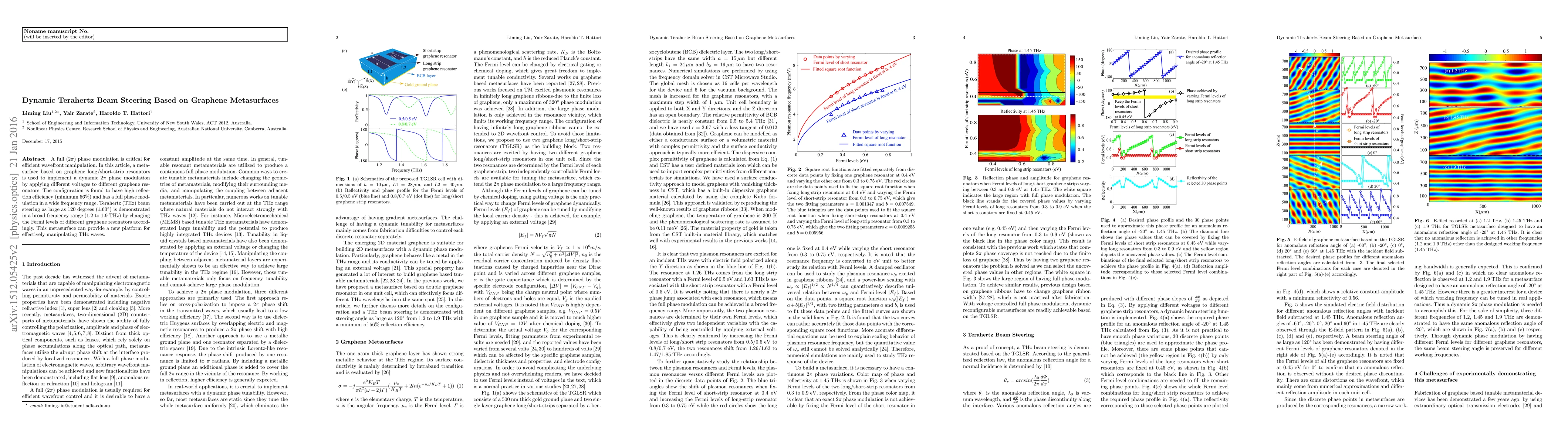 This paper presents a graphene-based metasurface enabling dynamic terahertz beam steering through full 2π phase modulation. By adjusting the Fermi levels of graphene resonators via different voltages, the metasurface achieves high reflection efficiency and demonstrates beam steering up to ±60° across a frequency range of 1.2 to 1.9 THz.