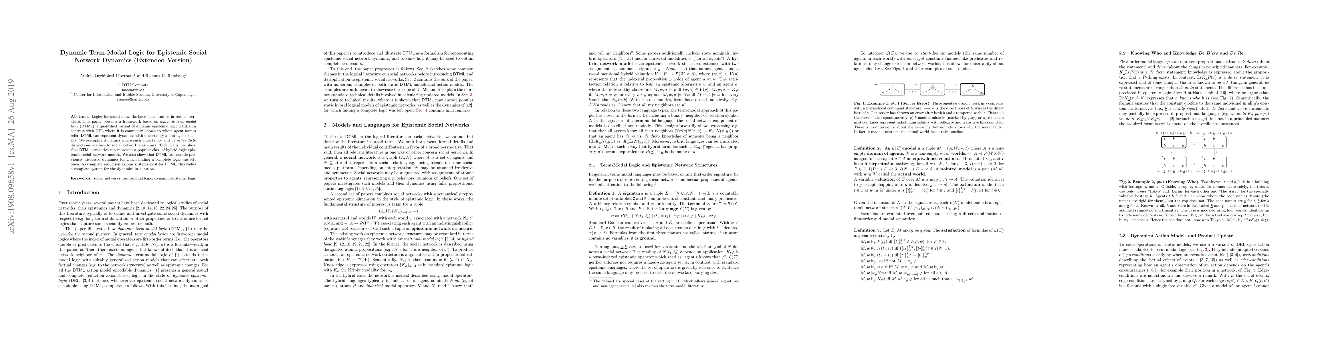This paper introduces dynamic term-modal logic (DTML), a quantified variant of dynamic epistemic logic, to model uncertain agent identities in social networks. DTML provides a complete system for representing dynamics where agent identity uncertainty and de re/de dicto distinctions are crucial.