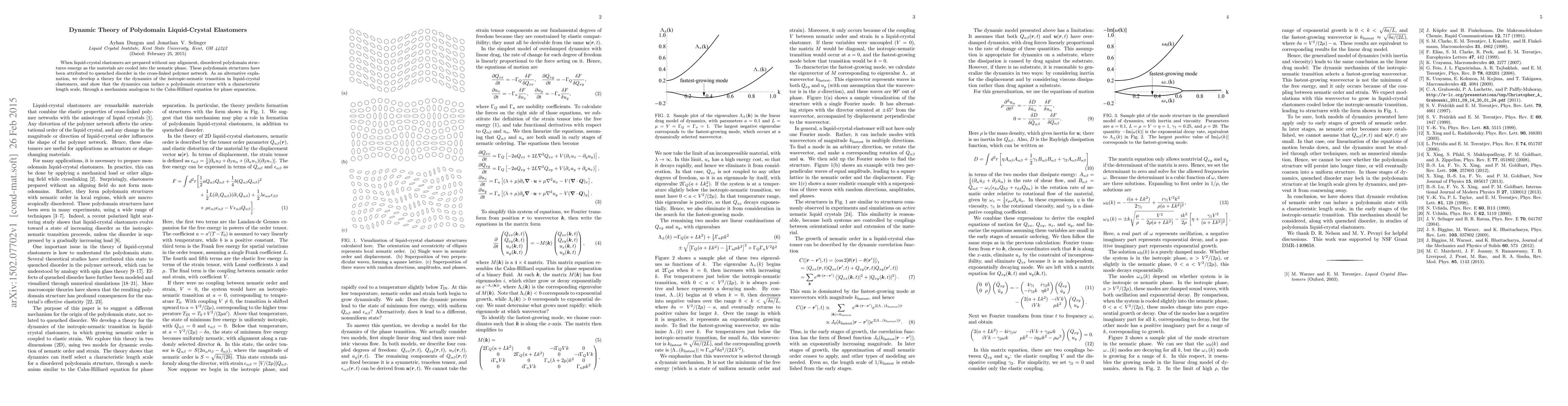 This paper proposes a dynamic theory explaining the formation of polydomain structures in liquid-crystal elastomers during the isotropic-nematic transition, attributing the phenomenon to dynamic processes rather than quenched disorder, and likening it to phase separation mechanisms.