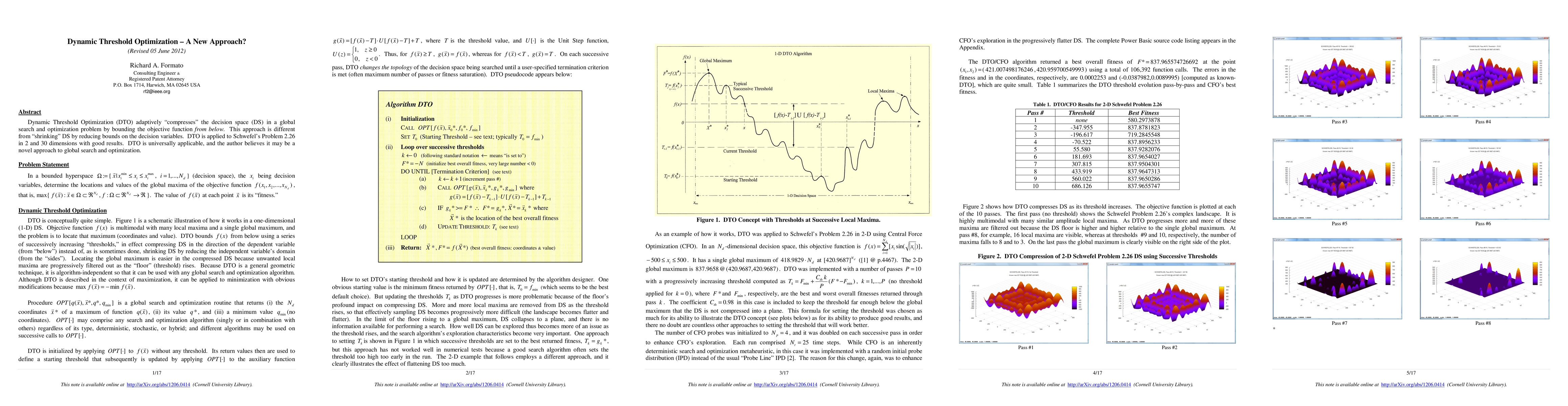 Dynamic Threshold Optimization (DTO) adaptively "compresses" the decision space (DS) in a global search and optimization problem by bounding the objective function from below. This approach is different from "shrinking" DS by reducing bounds on the decision variables. DTO is applied to Schwefel's Problem 2.26 in 2 and 30 dimensions with good results. DTO is universally applicable, and the author believes it may be a novel approach to global search and optimization.