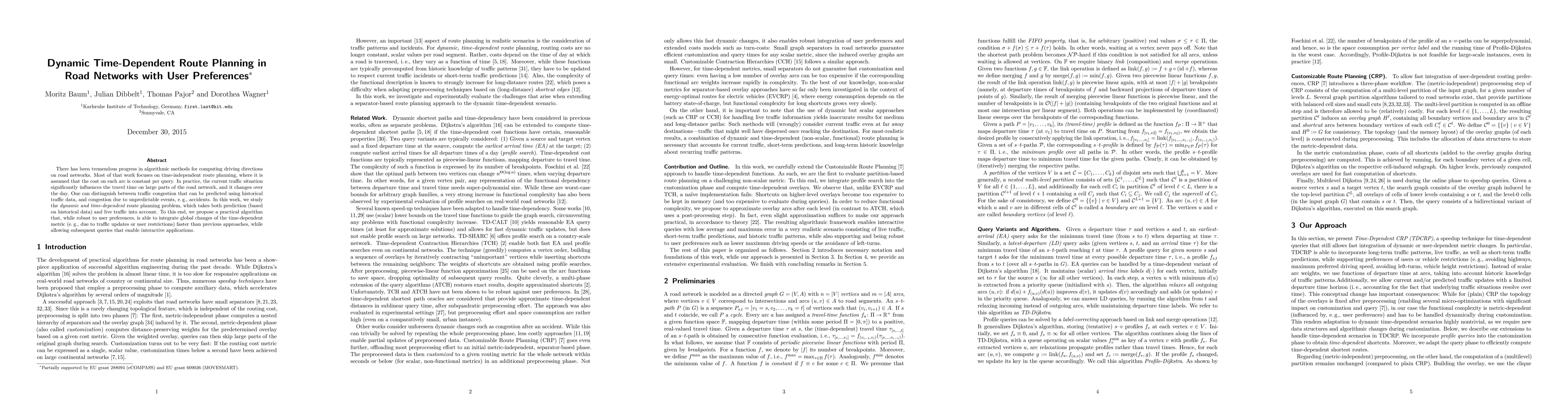 This paper proposes a dynamic time-dependent route planning algorithm that integrates both predicted traffic congestion based on historical data and live traffic updates, while accommodating user preferences and enabling faster metric updates compared to previous methods.