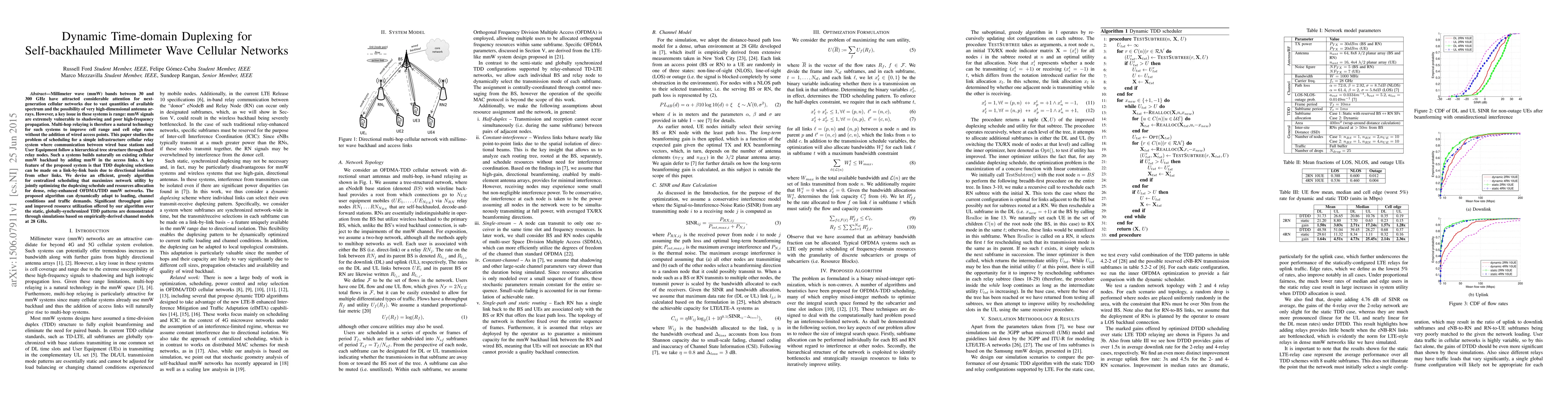 This paper proposes a dynamic time-domain duplexing method for self-backhauled millimeter wave cellular networks, leveraging multi-hop relaying to enhance range and performance. An efficient, greedy centralized scheduling algorithm is developed to optimize duplexing schedules and resource allocation, demonstrating significant throughput gains and improved resource utilization over static TDD patterns.