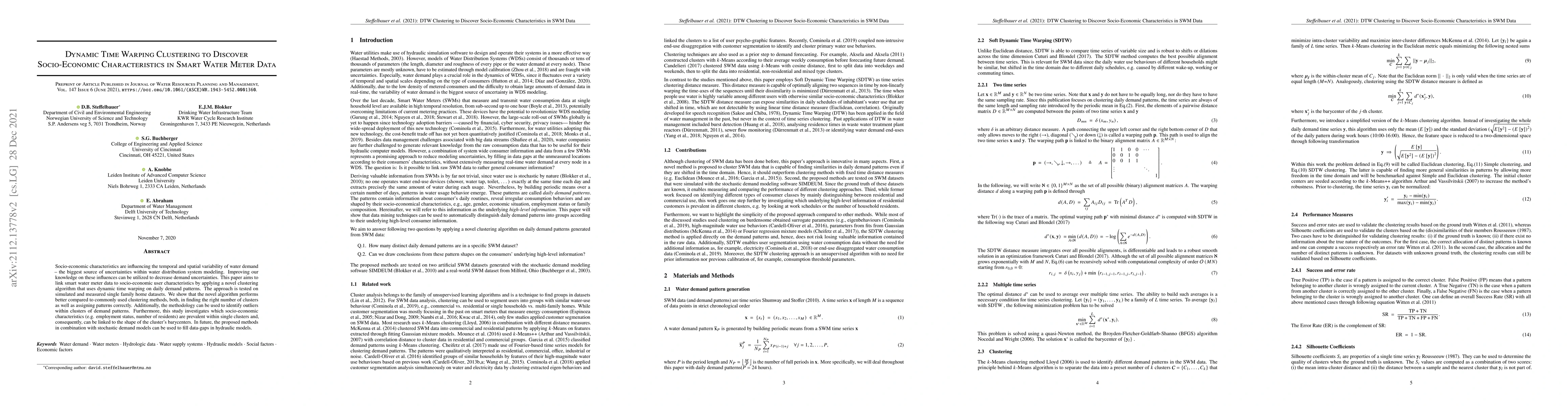 This paper introduces a novel dynamic time warping clustering algorithm to link smart water meter data to socio-economic characteristics, demonstrating superior performance over traditional methods in identifying demand patterns and socio-economic influences. The approach also identifies outliers and reveals prevalent socio-economic traits within clusters, potentially aiding future hydraulic model improvements.