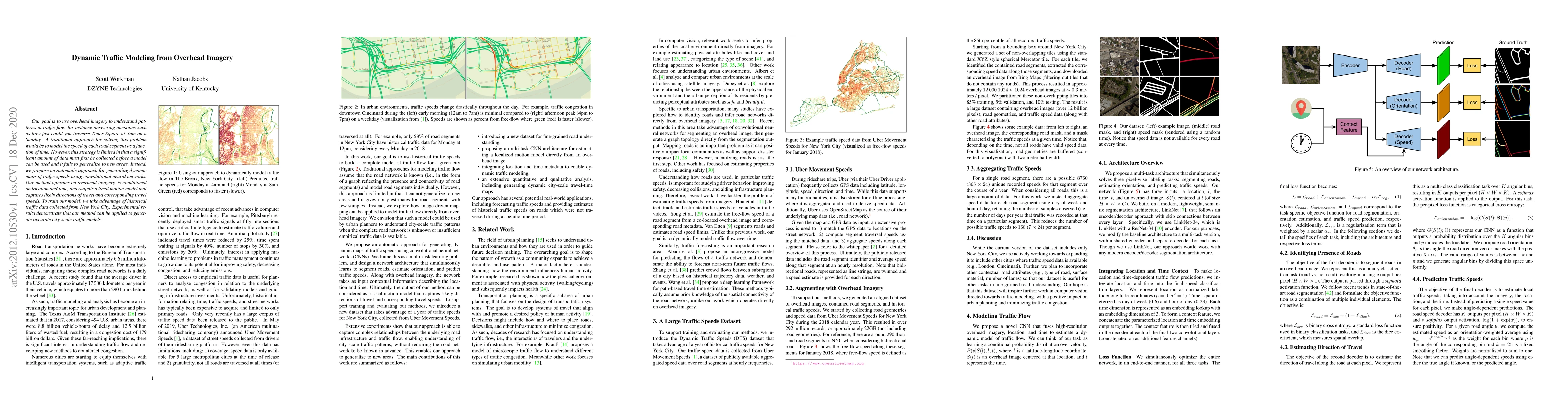 Our goal is to use overhead imagery to understand patterns in traffic flow, for instance answering questions such as how fast could you traverse Times Square at 3am on a Sunday. A traditional approach for solving this problem would be to model the speed of each road segment as a function of time. However, this strategy is limited in that a significant amount of data must first be collected before a model can be used and it fails to generalize to new areas. Instead, we propose an automatic approach for generating dynamic maps of traffic speeds using convolutional neural networks. Our method operates on overhead imagery, is conditioned on location and time, and outputs a local motion model that captures likely directions of travel and corresponding travel speeds. To train our model, we take advantage of historical traffic data collected from New York City. Experimental results demonstrate that our method can be applied to generate accurate city-scale traffic models.