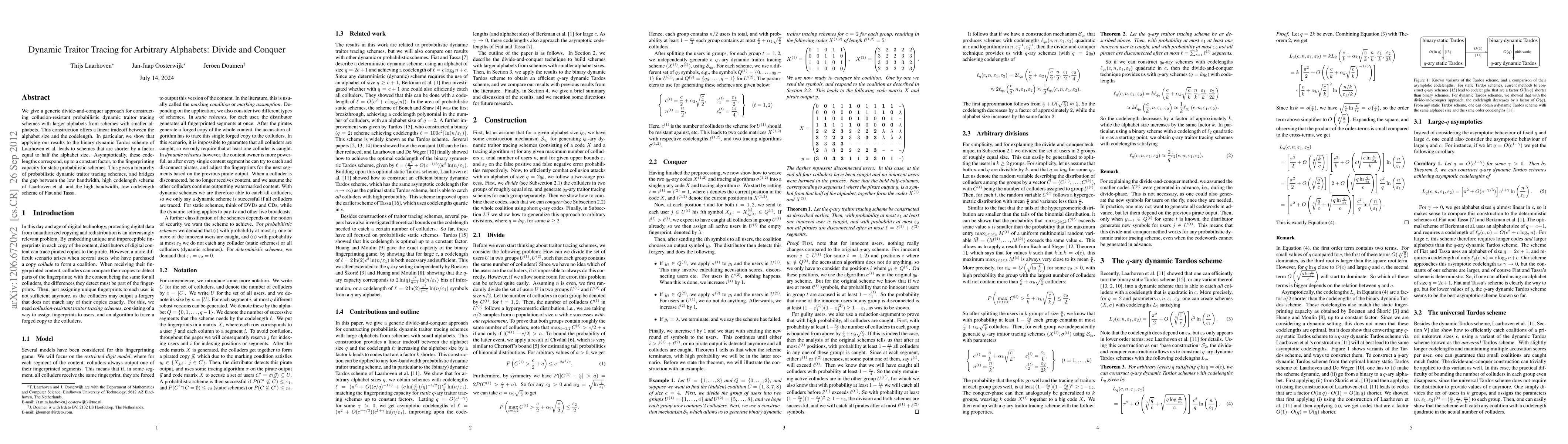 This paper presents a divide-and-conquer method to build dynamic traitor tracing schemes with larger alphabets, achieving a linear tradeoff between alphabet size and codelength. Applying this to the binary scheme of Laarhoven et al. results in shorter codes by half the alphabet size, bridging the gap between high and low codelength schemes.