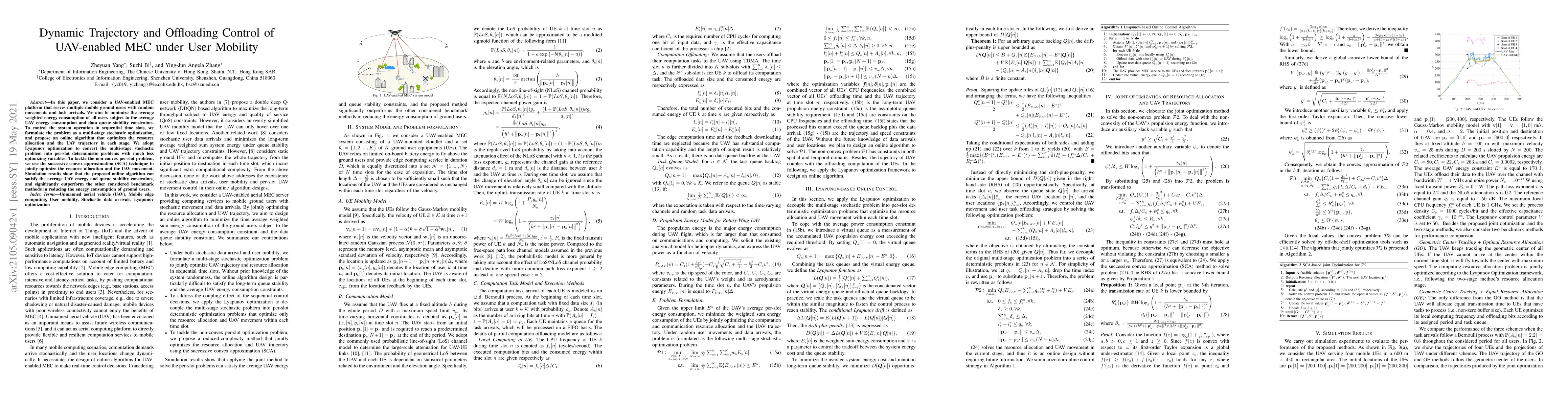 This paper proposes an online algorithm for a UAV-enabled MEC system to minimize energy consumption while managing mobile users' tasks, using Lyapunov optimization and successive convex approximation. Simulation results demonstrate significant energy savings compared to benchmark methods.