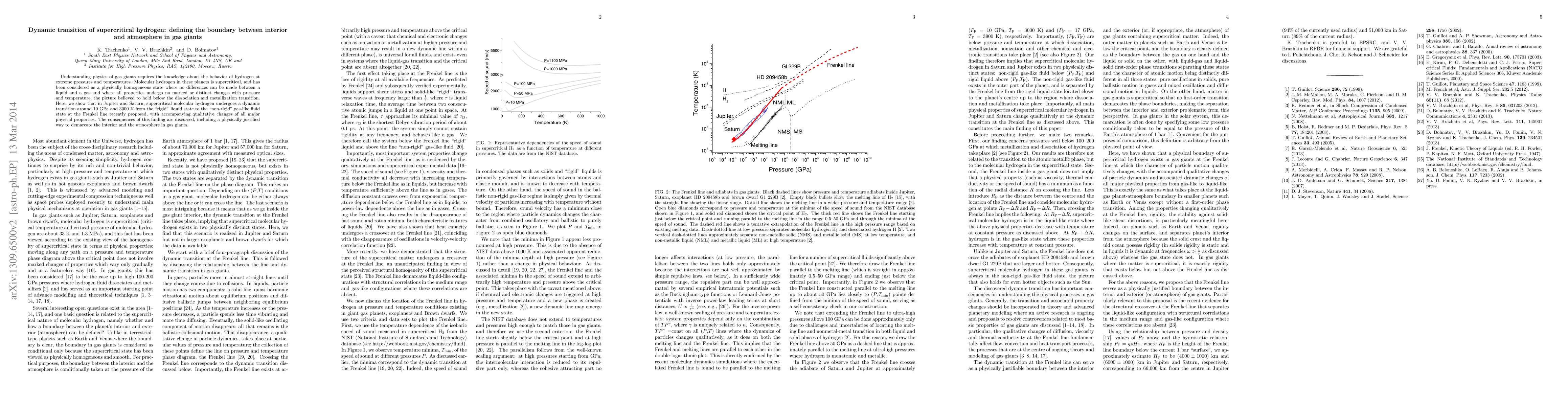 This paper reveals a dynamic transition in supercritical hydrogen in Jupiter and Saturn, showing that it shifts from a "rigid" liquid to a "non-rigid" gas-like fluid state around 10 GPa and 3000 K, leading to a redefined boundary between the planet's interior and atmosphere. This transition has significant implications for understanding the physical properties of gas giants.