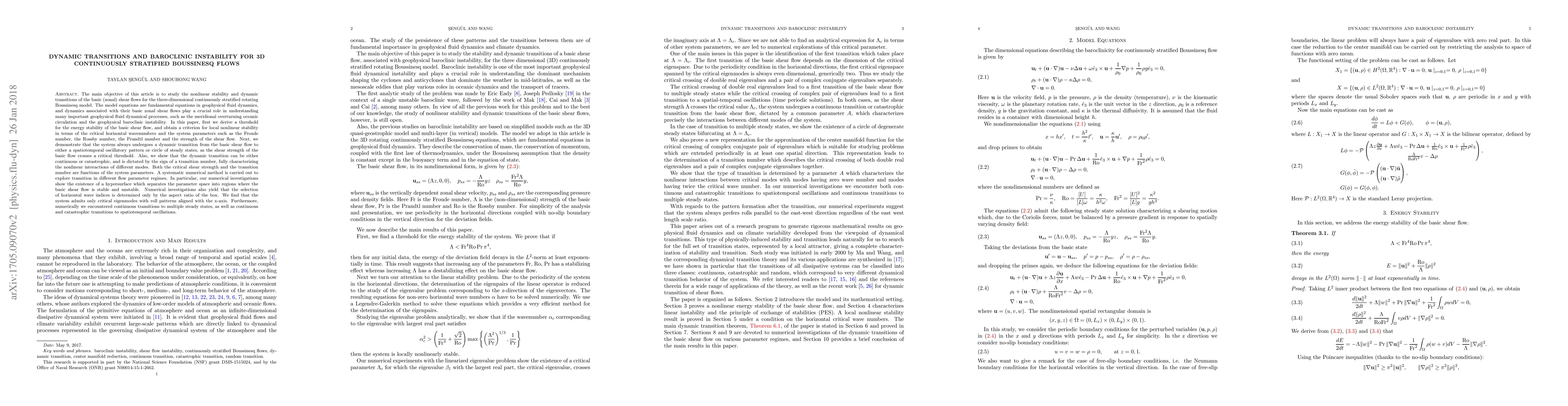 Researchers studied the nonlinear stability and dynamic transitions of basic zonal shear flows in a 3D continuously stratified rotating Boussinesq model, finding that the system undergoes continuous or catastrophic transitions to steady states or spatiotemporal oscillations as a critical threshold is crossed.