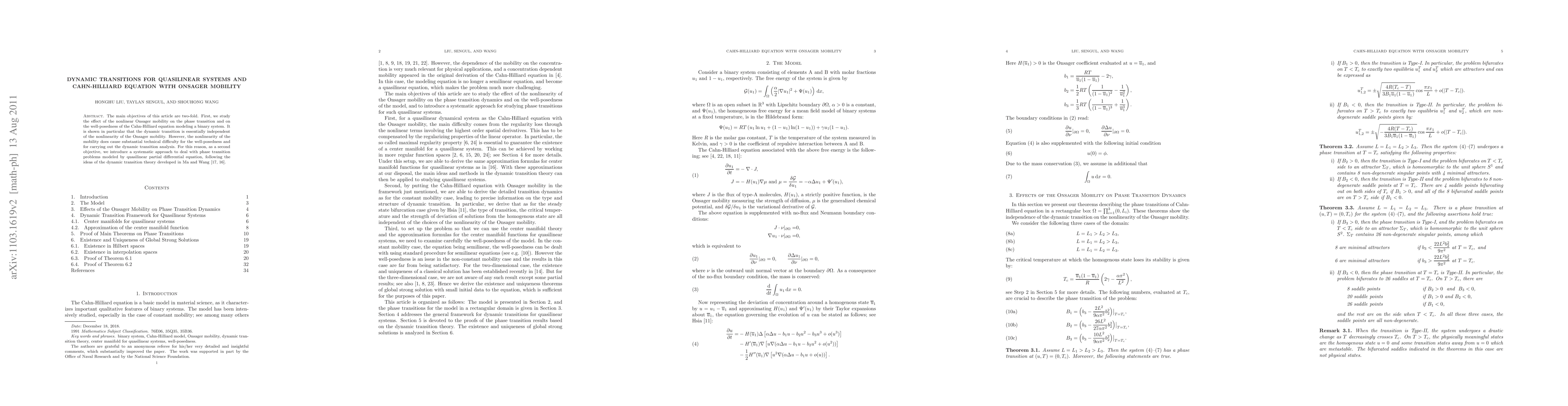 This research investigates the impact of nonlinear Onsager mobility on phase transitions and well-posedness in the Cahn-Hilliard equation for binary systems. Despite mobility nonlinearity affecting technical aspects, dynamic transitions are found to be independent of it. The paper introduces a method to tackle phase transition problems in quasilinear PDEs, inspired by dynamic transition theory, addressing challenges posed by mobility nonlinearity.