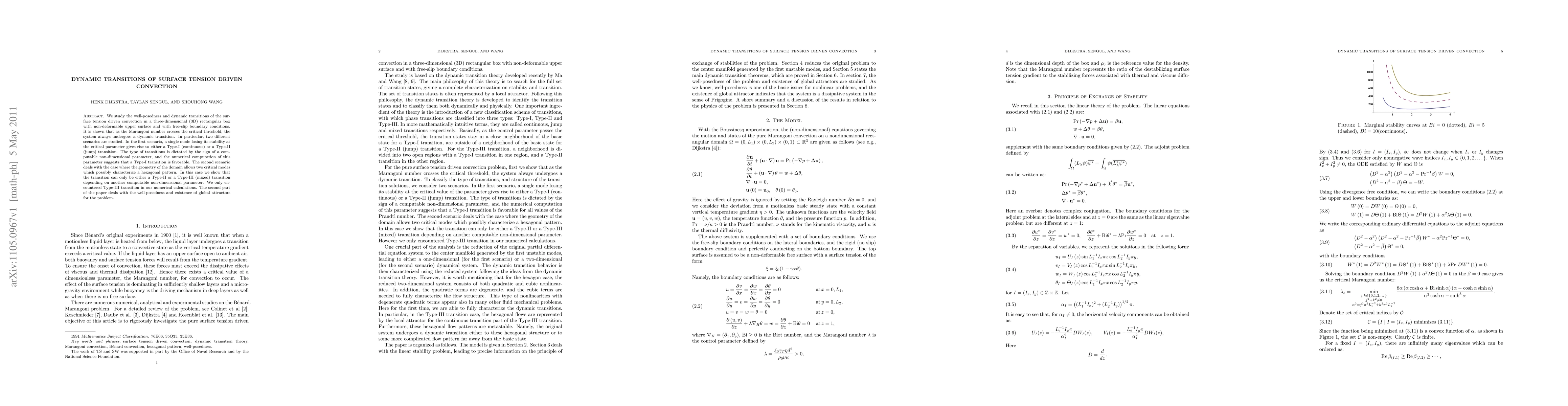 This paper investigates the dynamic transitions of surface tension driven convection in a 3D rectangular box, revealing that critical Marangoni number thresholds lead to either Type-I or Type-II transitions, with Type-I being more common. It also explores scenarios with two critical modes, showing that transitions can be Type-II or Type-III, with Type-III observed numerically. The study concludes with an analysis of the well-posedness and existence of global attractors.