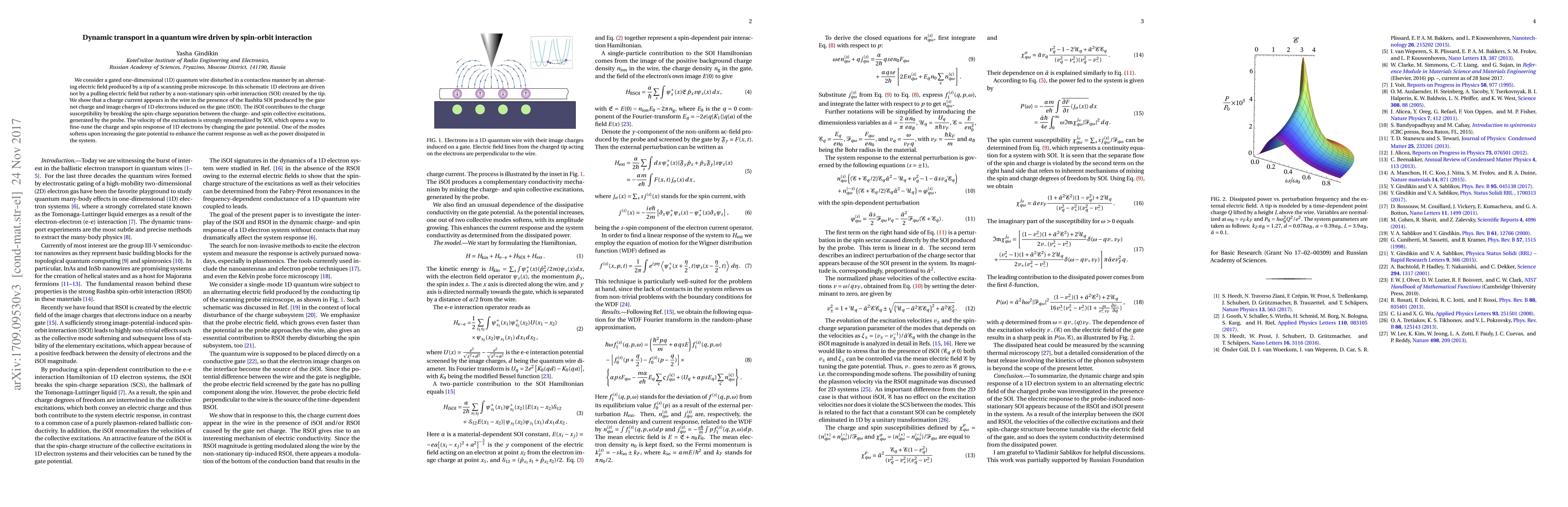 We consider a gated one-dimensional (1D) quantum wire disturbed in a contactless manner by an alternating electric field produced by a tip of a scanning probe microscope. In this schematic 1D electrons are driven not by a pulling electric field but rather by a non-stationary spin-orbit interaction (SOI) created by the tip. We show that a charge current appears in the wire in the presence of the Rashba SOI produced by the gate net charge and image charges of 1D electrons induced on the gate (iSOI). The iSOI contributes to the charge susceptibility by breaking the spin-charge separation between the charge- and spin collective excitations, generated by the probe. The velocity of the excitations is strongly renormalized by SOI, which opens a way to fine-tune the charge and spin response of 1D electrons by changing the gate potential. One of the modes softens upon increasing the gate potential to enhance the current response as well as the power dissipated in the system.