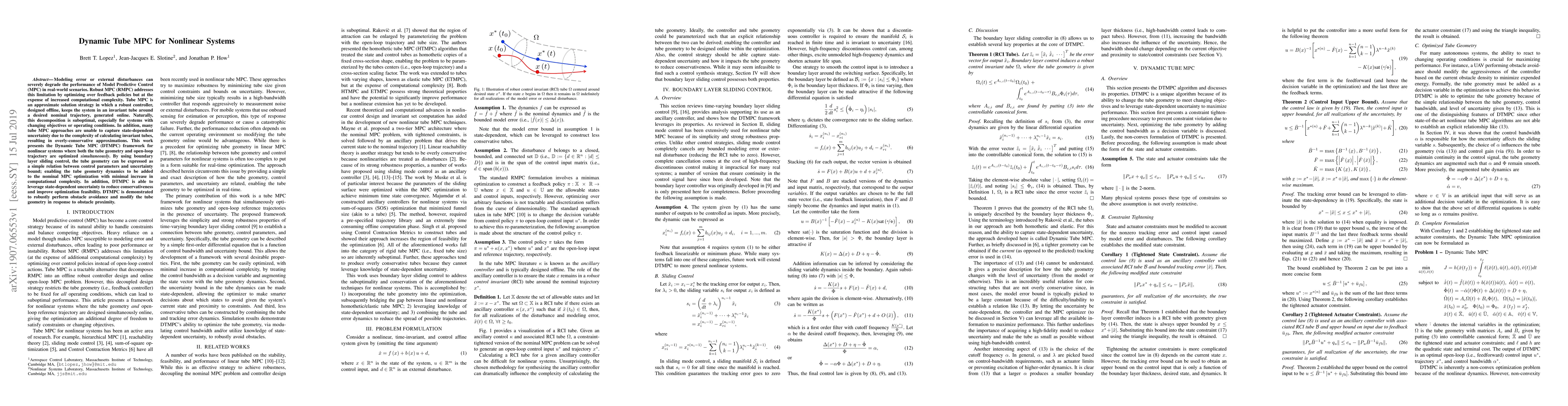 This research presents a novel approach to MPC that leverages the concept of dynamic tubes to improve robustness and efficiency, offering a new perspective on the design of MPC algorithms for nonlinear systems.