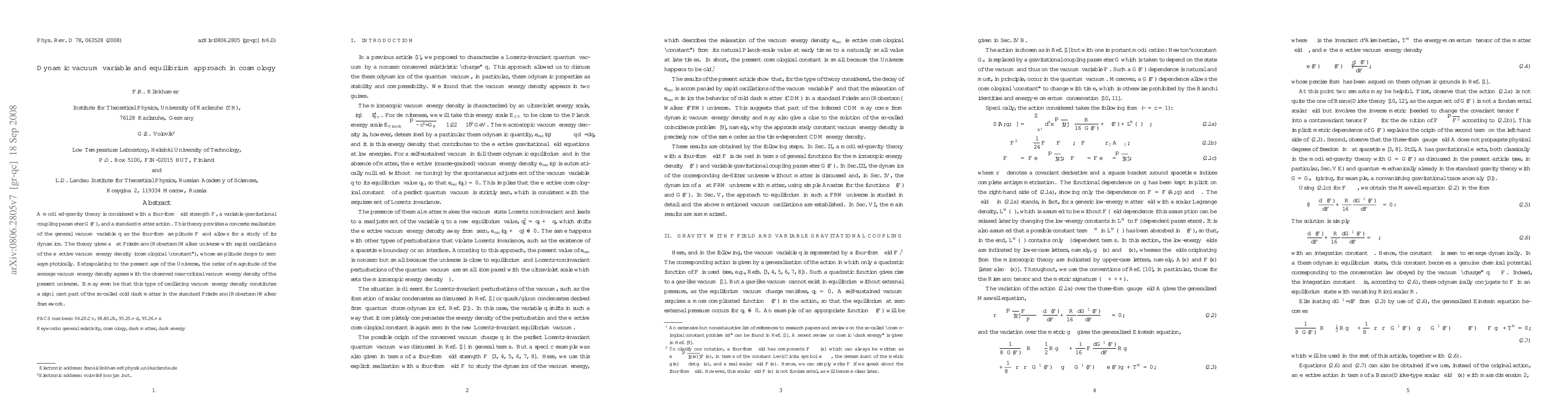 A modified-gravity theory is considered with a four-form field strength F, a variable gravitational coupling parameter G(F), and a standard matter action. This theory provides a concrete realization of the general vacuum variable q as the four-form amplitude F and allows for a study of its dynamics. The theory gives a flat Friedmann-Robertson-Walker universe with rapid oscillations of the effective vacuum energy density (cosmological "constant"), whose amplitude drops to zero asymptotically. Extrapolating to the present age of the Universe, the order of magnitude of the average vacuum energy density agrees with the observed near-critical vacuum energy density of the present universe. It may even be that this type of oscillating vacuum energy density constitutes a significant part of the so-called cold dark matter in the standard Friedmann-Robertson-Walker framework.
