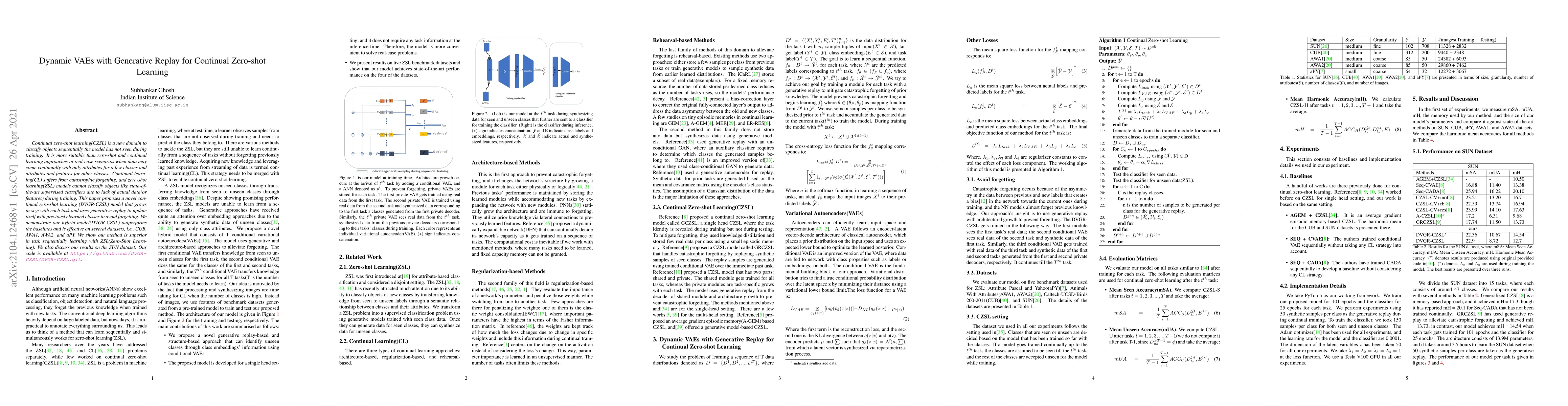 This paper introduces a novel Dynamic VAEs with Generative Replay (DVGR-CZSL) model for continual zero-shot learning, which dynamically grows and employs generative replay to mitigate catastrophic forgetting and enhance performance in classifying unseen classes sequentially. The proposed model outperforms baselines on multiple datasets, demonstrating superior effectiveness in zero-shot learning scenarios.