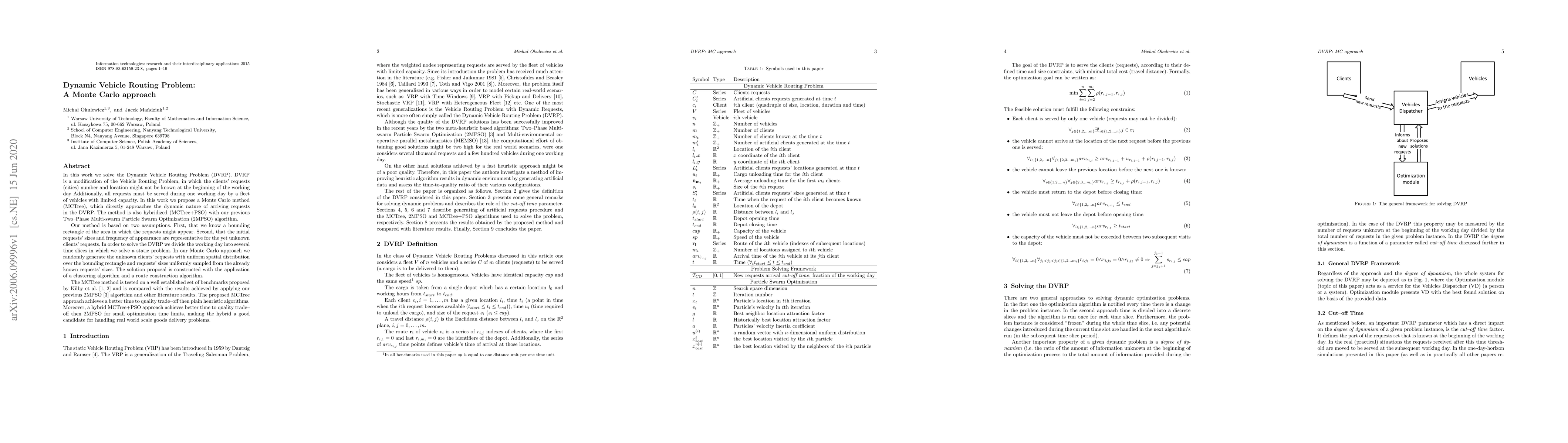 In this work we solve the Dynamic Vehicle Routing Problem (DVRP). DVRP is a modification of the Vehicle Routing Problem, in which the clients' requests (cities) number and location might not be known at the beginning of the working day Additionally, all requests must be served during one working day by a fleet of vehicles with limited capacity. In this work we propose a Monte Carlo method (MCTree), which directly approaches the dynamic nature of arriving requests in the DVRP. The method is also hybridized (MCTree+PSO) with our previous Two-Phase Multi-swarm Particle Swarm Optimization (2MPSO) algorithm. Our method is based on two assumptions. First, that we know a bounding rectangle of the area in which the requests might appear. Second, that the initial requests' sizes and frequency of appearance are representative for the yet unknown clients' requests. In order to solve the DVRP we divide the working day into several time slices in which we solve a static problem. In our Monte Carlo approach we randomly generate the unknown clients' requests with uniform spatial distribution over the bounding rectangle and requests' sizes uniformly sampled from the already known requests' sizes. The solution proposal is constructed with the application of a clustering algorithm and a route construction algorithm. The MCTree method is tested on a well established set of benchmarks proposed by Kilby et al. and is compared with the results achieved by applying our previous 2MPSO algorithm and other literature results. The proposed MCTree approach achieves a better time to quality trade-off then plain heuristic algorithms. Moreover, a hybrid MCTree+PSO approach achieves better time to quality trade-off then 2MPSO for small optimization time limits, making the hybrid a good candidate for handling real world scale goods delivery problems.