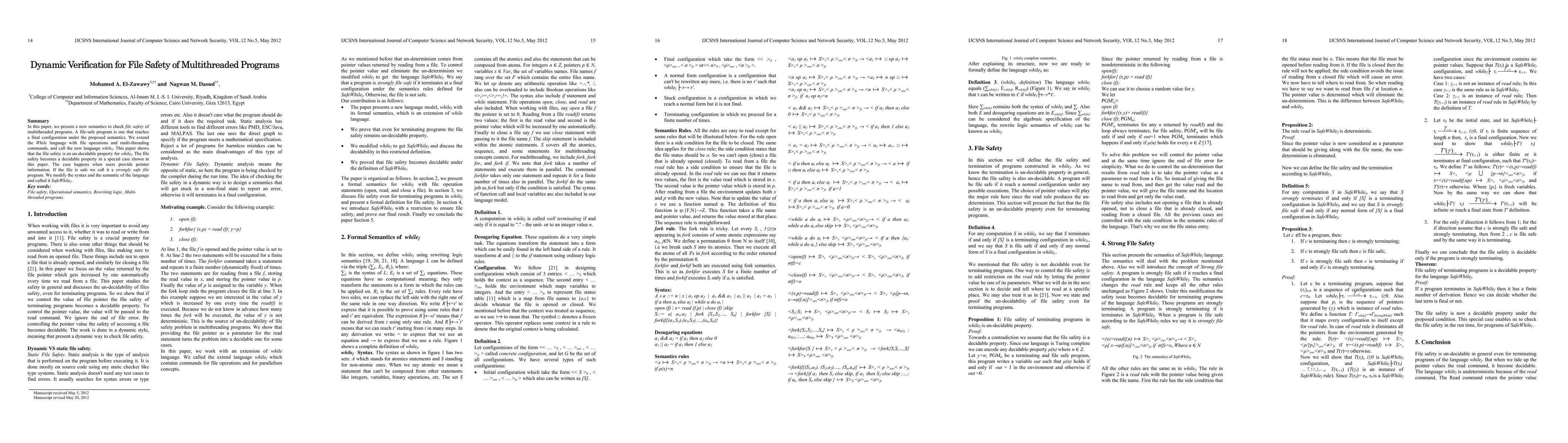 This paper introduces a new semantics for verifying file safety in multithreaded programs using a language called whilef, which extends While with file operations and multi-threading commands. It demonstrates that file safety is undecidable in general but becomes decidable when users provide pointer information, leading to the development of SafeWhilef.