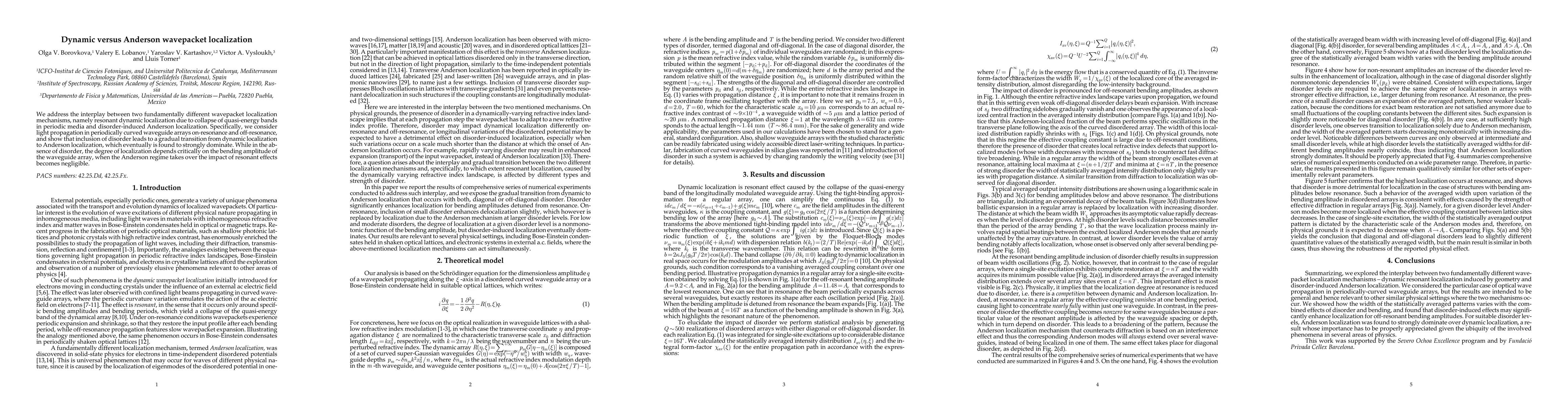 This paper explores the transition between dynamic localization of light in periodically curved waveguide arrays and Anderson localization induced by disorder, showing how disorder leads to a shift from dynamic to dominant Anderson localization, diminishing the effect of periodic structure bending.
