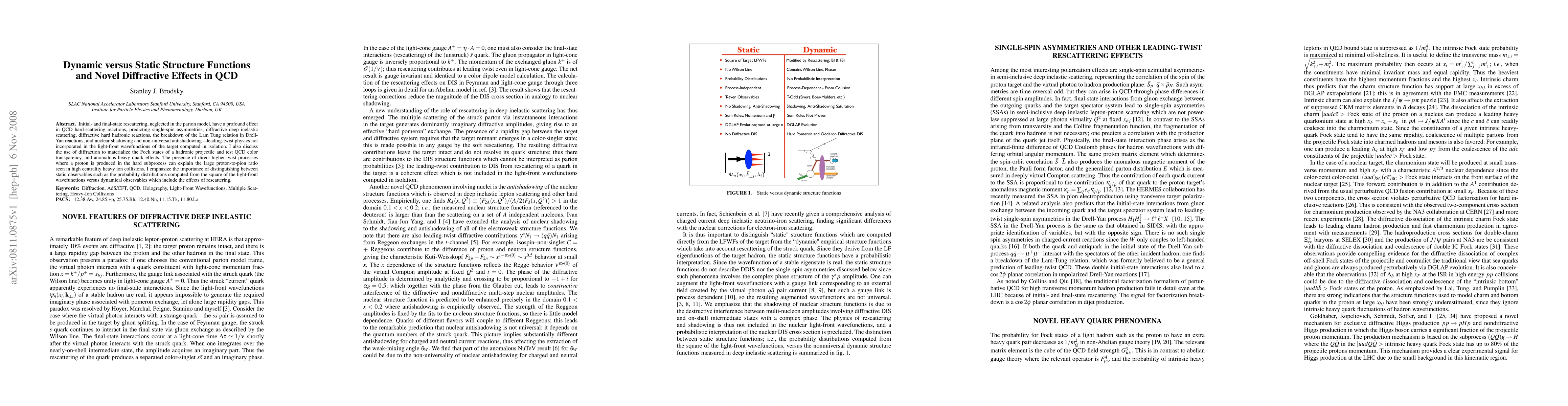 This paper explores the impact of initial- and final-state rescattering in QCD hard-scattering reactions, highlighting phenomena like single-spin asymmetries and diffractive scattering, and distinguishes between static and dynamic structure functions. It also discusses the implications of diffraction for testing QCD color transparency and anomalous heavy quark effects.