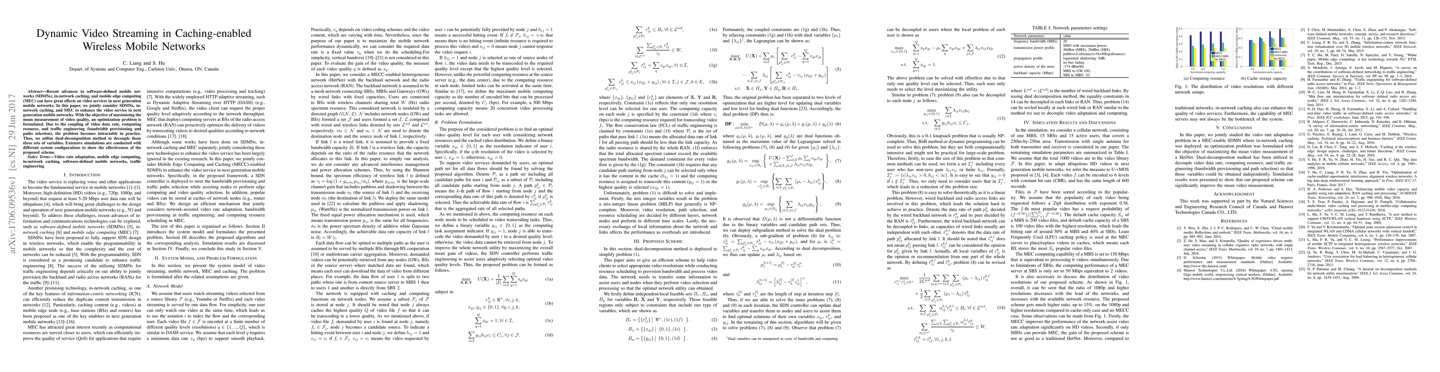 This paper explores the integration of software-defined mobile networks, in-network caching, and mobile edge computing to improve video streaming in future mobile networks. It formulates an optimization problem to maximize video quality, employing a dual-decomposition method to manage the complexity of coupled data rate, computing resources, and traffic engineering.