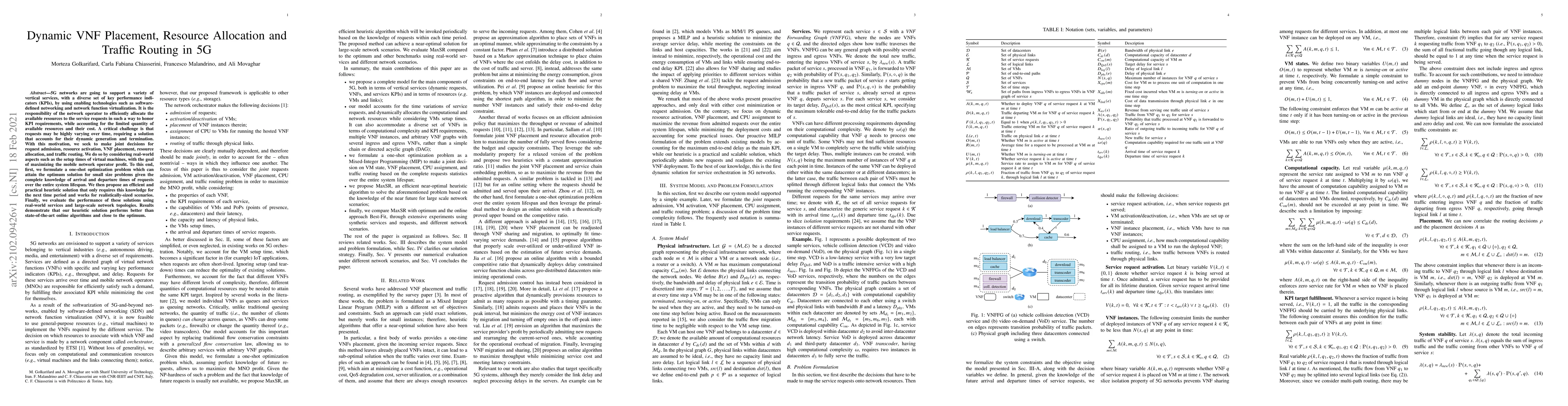 This paper addresses dynamic resource allocation, VNF placement, and traffic routing in 5G networks to optimize network operator profit. It formulates an optimization problem for small-scale scenarios and proposes a practical heuristic for larger networks, demonstrating superior performance compared to existing online methods.