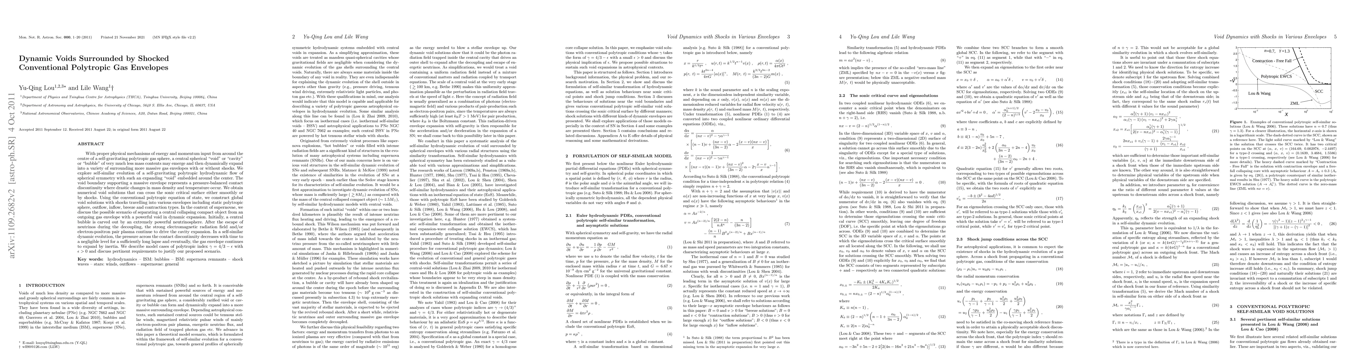 With proper physical mechanisms of energy and momentum input from around the centre of a self-gravitating polytropic gas sphere, a central spherical "void" or "cavity" or "bubble" of very much less mass contents may emerge and then dynamically expand into a variety of surrounding more massive gas envelopes with or without shocks. We explore self-similar evolution of a self-gravitating polytropic hydrodynamic flow of spherical symmetry with such an expanding "void" embedded around the center. The void boundary supporting a massive envelope represents a pressure-balanced contact discontinuity where drastic changes in mass density and temperature occur. We obtain numerical void solutions that can cross the sonic critical surface either smoothly or by shocks. Using the conventional polytropic equation of state, we construct global void solutions with shocks travelling into various envelopes including static polytropic sphere, outflow, inflow, breeze and contraction types. In the context of supernovae, we discuss the possible scenario of separating a central collapsing compact object from an outgoing gas envelope with a powerful void in dynamic expansion. Initially, a central bubble is carved out by an extremely powerful neutrinosphere. After the escape of neutrinos during the decoupling, the strong electromagnetic radiation field and/or electron-positron pair plasma continue to drive the cavity expansion. In a self-similar dynamic evolution, the pressure across the contact discontinuity decreases with time to a negligible level for a sufficiently long lapse and eventually, the gas envelope continues to expand by inertia. We describe model cases of polytropic index $\gamma=4/3-\epsilon$ with $\epsilon>0$ and discuss pertinent requirements to justify our proposed scenario.