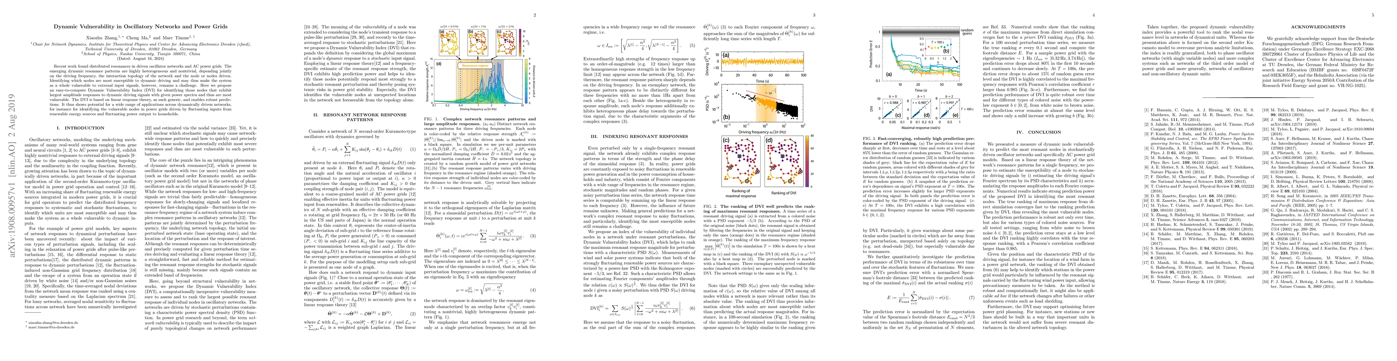The research proposes a Dynamic Vulnerability Index (DVI) based on linear response theory to identify nodes in oscillatory networks, such as power grids, that are most susceptible to dynamic driving signals with given power spectra.