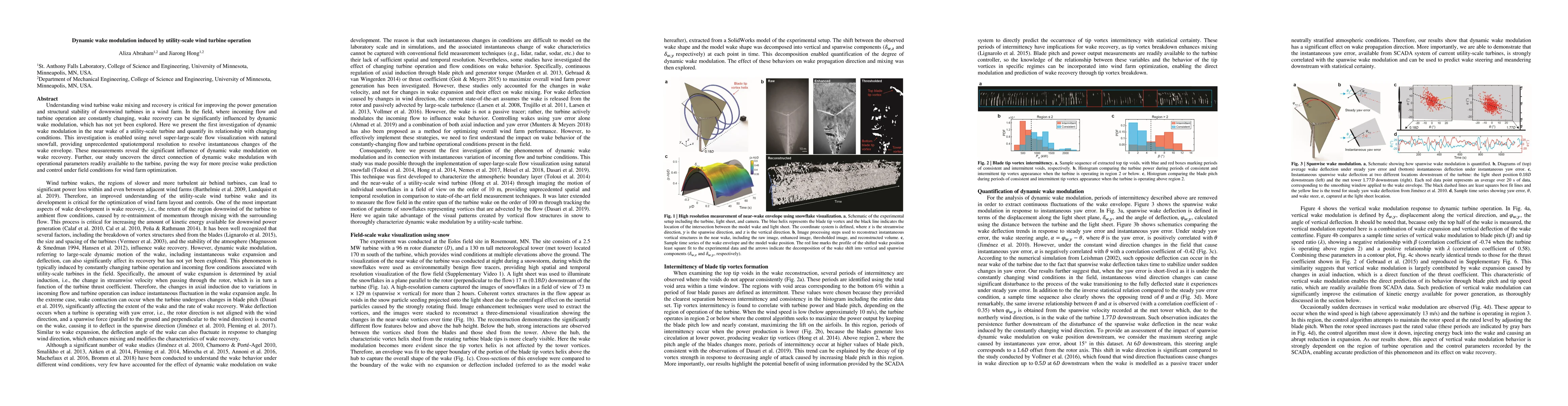 This study investigates dynamic wake modulation in the near wake of utility-scale wind turbines using super-large-scale flow visualization with natural snowfall. The findings reveal significant influence on wake recovery and establish a direct link to operational parameters, enabling improved wake prediction and control for wind farm optimization.