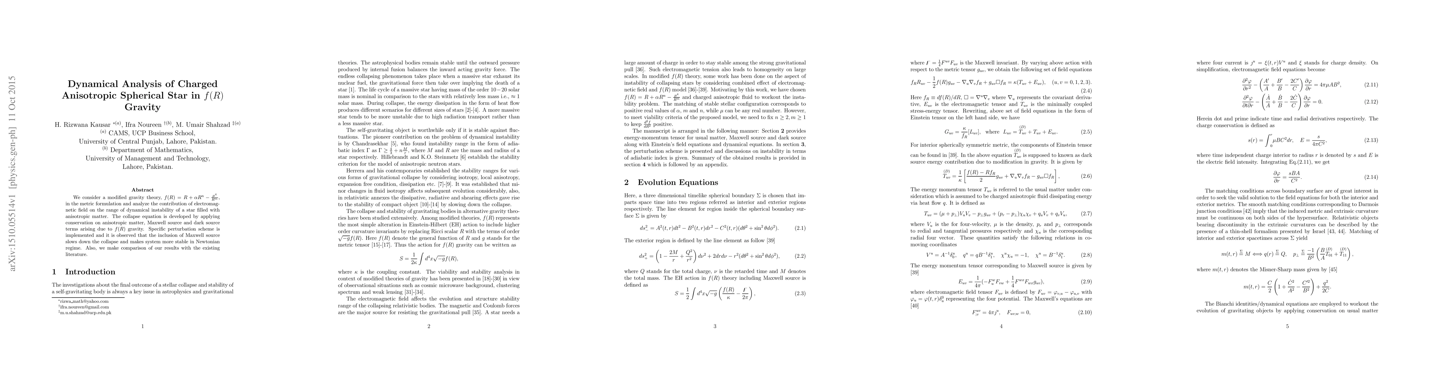 This paper explores a modified gravity theory, $f(R)$ gravity, in the context of charged anisotropic spherical stars, analyzing how electromagnetic fields influence their dynamical instability. It finds that incorporating Maxwell sources into the $f(R)$ gravity framework slows down the collapse and enhances stability in the Newtonian regime, comparing these findings with existing literature.