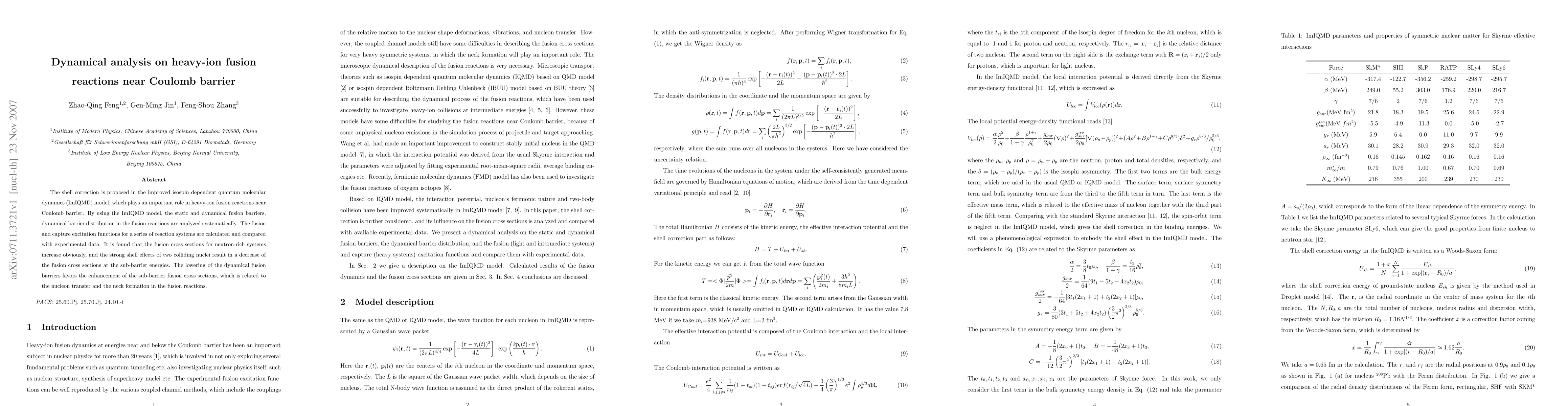 This paper uses the improved isospin dependent quantum molecular dynamics (ImIQMD) model to analyze heavy-ion fusion reactions near the Coulomb barrier, finding that shell correction effects significantly influence fusion cross sections, especially for neutron-rich systems, and that the formation of a dynamical fusion barrier enhances sub-barrier fusion.