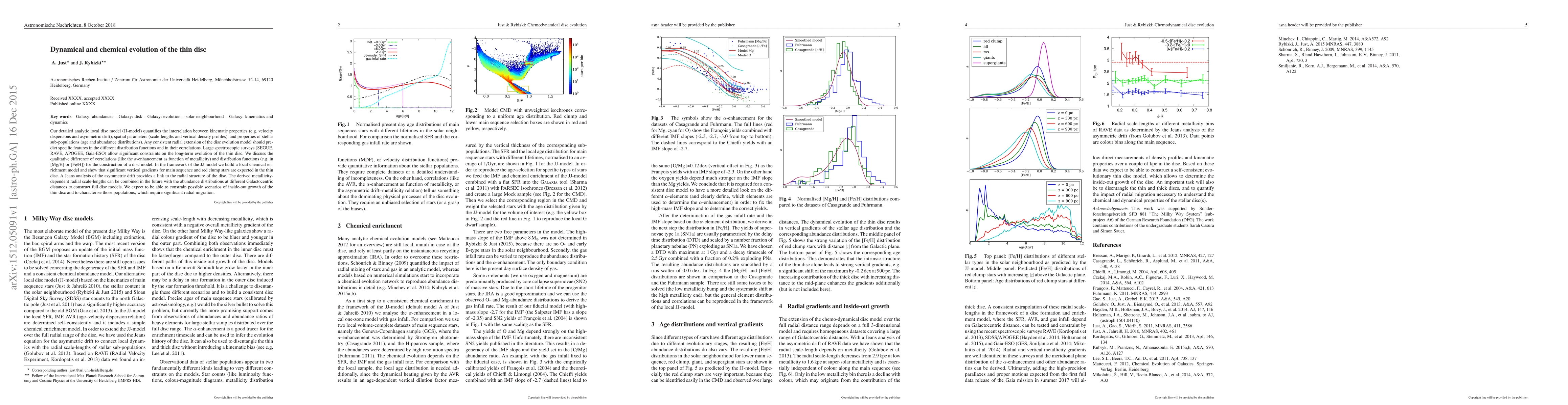Our detailed analytic local disc model (JJ-model) quantifies the interrelation between kinematic properties (e.g. velocity dispersions and asymmetric drift), spatial parameters (scale-lengths and vertical density profiles), and properties of stellar sub-populations (age and abundance distributions). Any consistent radial extension of the disc evolution model should predict specific features in the different distribution functions and in their correlations. Large spectroscopic surveys (SEGUE, RAVE, APOGEE, Gaia-ESO) allow significant constraints on the long-term evolution of the thin disc. We discuss the qualitative difference of correlations (like the alpha-enhancement as function of metallicity) and distribution functions (e.g. in [Mg/H] or [Fe/H]) for the construction of a disc model. In the framework of the JJ-model we build a local chemical enrichment model and show that significant vertical gradients for main sequence and red clump stars are expected in the thin disc. A Jeans analysis of the asymmetric drift provides a link to the radial structure of the disc. The derived metallicity-dependent radial scale-lengths can be combined in the future with the abundance distributions at different Galactocentric distances to construct full disc models. We expect to be able to constrain possible scenarios of inside-out growth of the thin disc and to characterise those populations, which require significant radial migration.