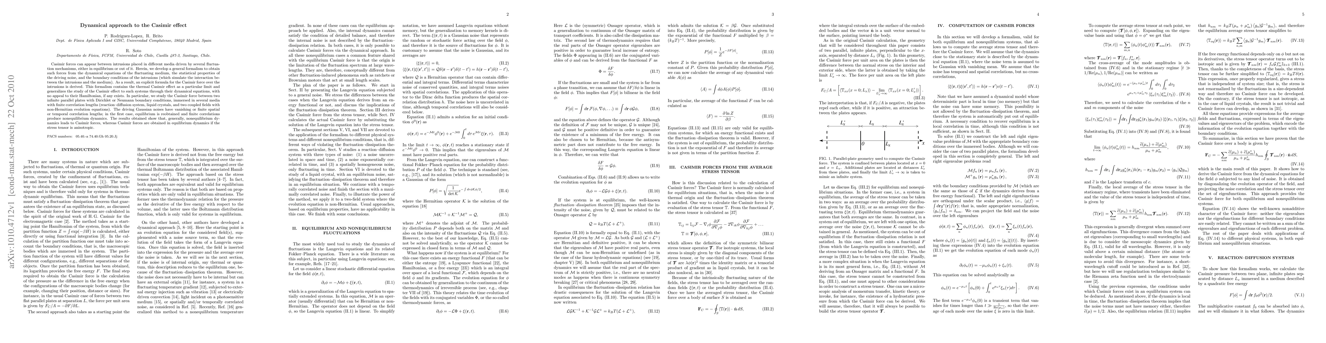 Casimir forces can appear between intrusions placed in different media driven by several fluctuation mechanisms, either in equilibrium or out of it. Herein, we develop a general formalism to obtain such forces from the dynamical equations of the fluctuating medium, the statistical properties of the driving noise, and the boundary conditions of the intrusions (which simulate the interaction between the intrusions and the medium). As a result, an explicit formula for the Casimir force over the intrusions is derived. This formalism contains the thermal Casimir effect as a particular limit and generalizes the study of the Casimir effect to such systems through their dynamical equations, with no appeal to their Hamiltonian, if any exists. In particular, we study the Casimir force between two infinite parallel plates with Dirichlet or Neumann boundary conditions, immersed in several media with finite correlation lengths (reaction--diffusion system, liquid crystals, and two coupled fields with non-Hermitian evolution equations). The driving Gaussian noises have vanishing or finite spatial or temporal correlation lengths; in the first case, equilibrium is reobtained and finite correlations produce nonequilibrium dynamics. The results obtained show that, generally, nonequilibrium dynamics leads to Casimir forces, whereas Casimir forces are obtained in equilibrium dynamics if the stress tensor is anisotropic.