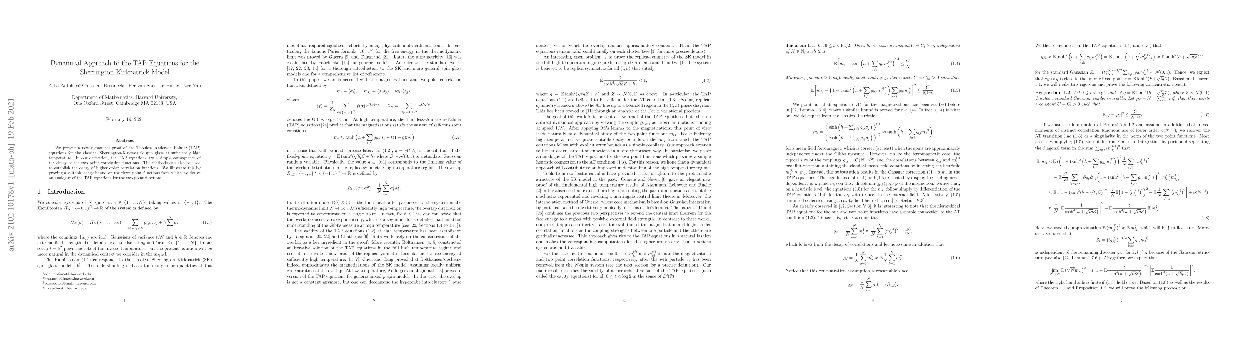 Researchers provide a new dynamical proof of the Thouless-Anderson-Palmer equations for the Sherrington-Kirkpatrick spin glass model at high temperatures, showing that these equations follow from the decay of correlation functions.