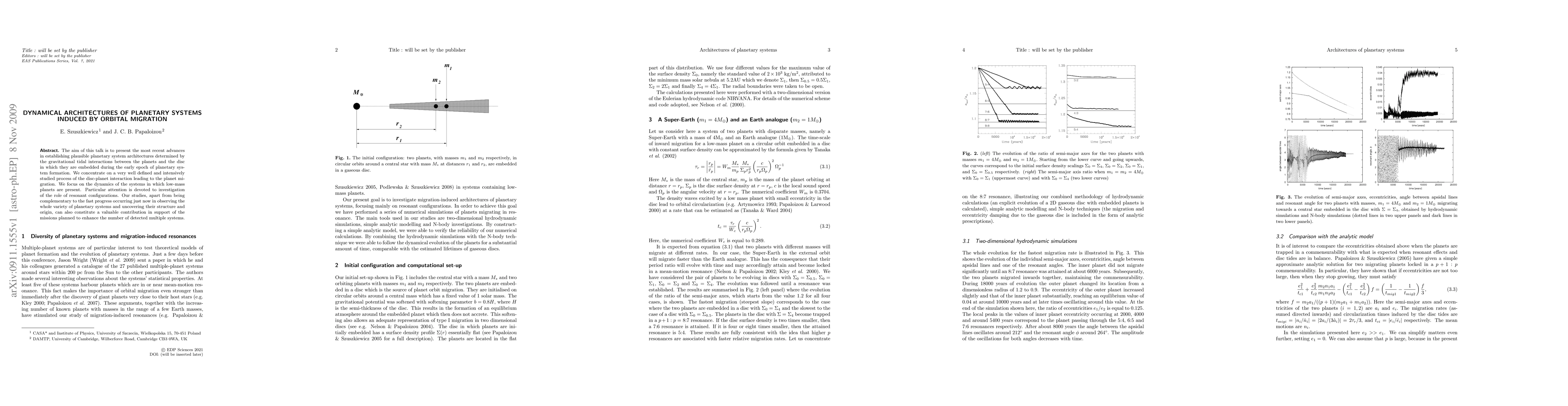 This paper discusses recent advances in understanding planetary system architectures shaped by gravitational tidal interactions during early formation, focusing on the disc-planet interaction leading to planet migration, especially in systems with low-mass planets, and the significance of resonant configurations in these dynamics. The findings support observational missions aimed at discovering more multiple planetary systems.