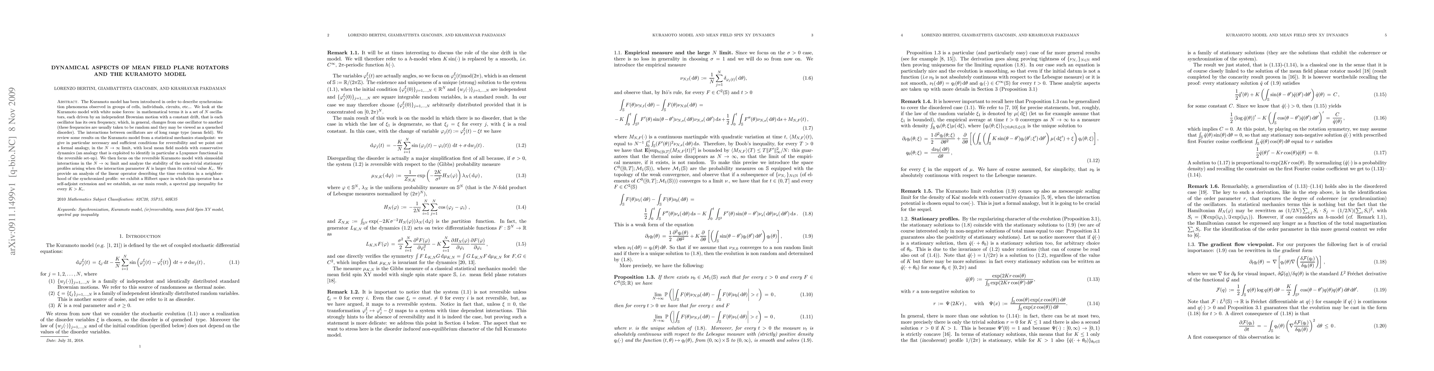 This paper explores the Kuramoto model with white noise, focusing on synchronization phenomena in a system of N oscillators with random frequencies. It establishes conditions for reversibility and analyzes the stability of synchronized profiles, proving a spectral gap inequality for interactions above a critical threshold.