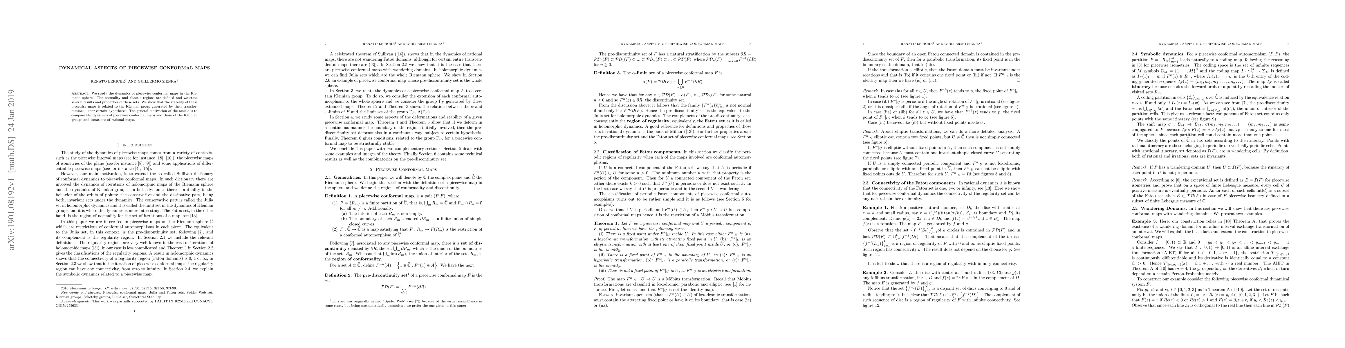 This paper investigates the dynamics of piecewise conformal maps on the Riemann sphere, identifying normality and chaotic regions, and demonstrating their stability linked to the Kleinian group. The study aims to compare the dynamics of these maps with those of Kleinian groups and rational map iterations.