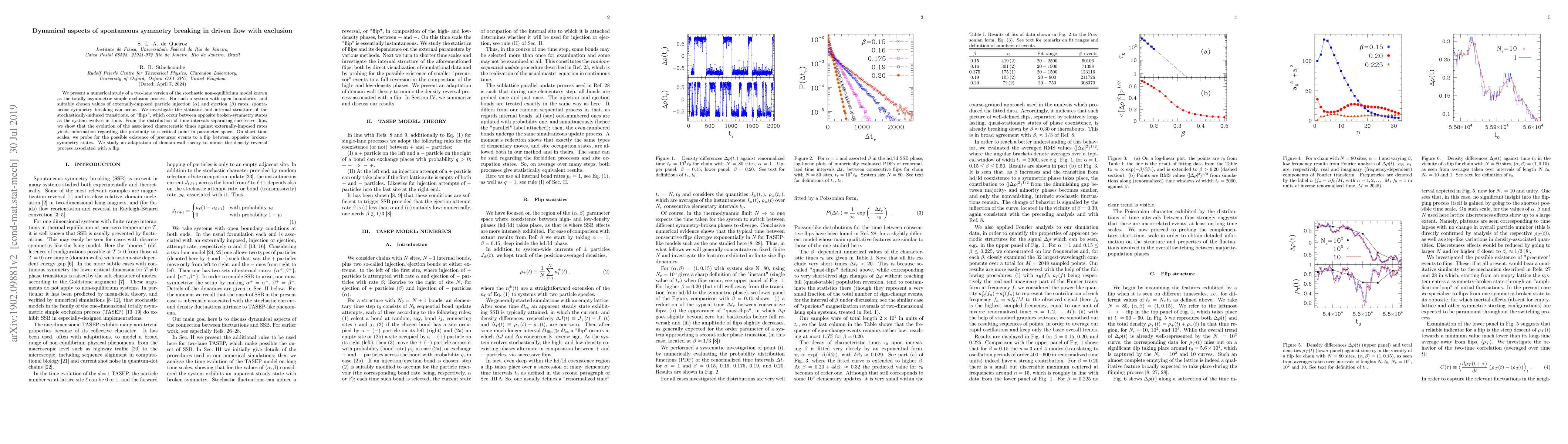 Researchers studied a type of particle flow that can exhibit spontaneous symmetry breaking under certain conditions. They found that analyzing the time intervals between changes in the system can reveal information about its proximity to a critical point.