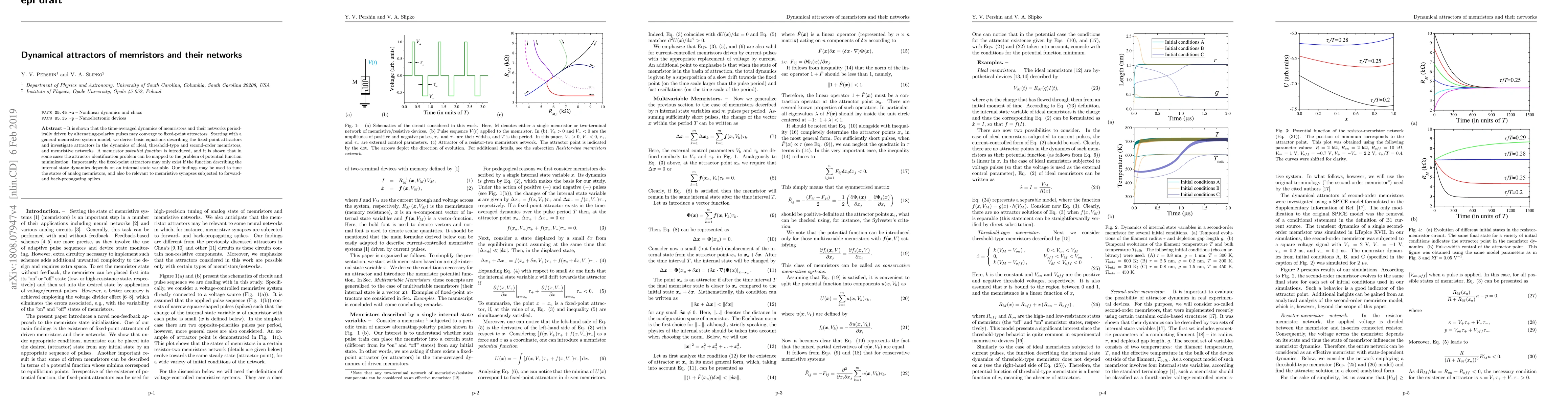 This paper investigates the dynamical attractors of memristors and their networks under periodic driving, showing that they can converge to fixed-point attractors. It introduces a memristor potential function and demonstrates that attractor identification can be reduced to potential function minimization, highlighting the importance of state-dependent dynamics for attractor existence.