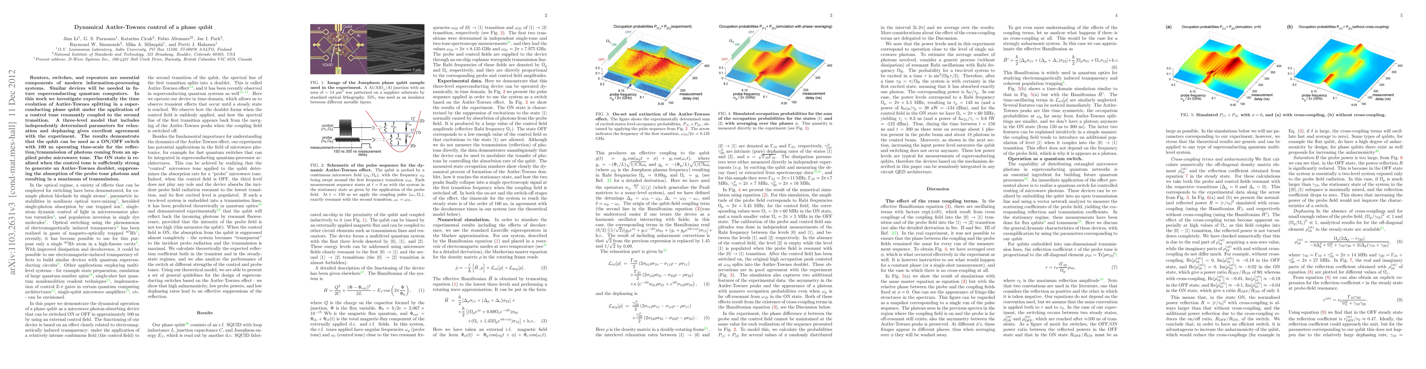 This study experimentally investigates the dynamical Autler-Townes splitting in a superconducting phase qubit using a resonantly coupled control tone. The results show that the qubit can function as a fast ON/OFF switch for controlling the transmission of microwave photons with a 100 ns operating time scale.