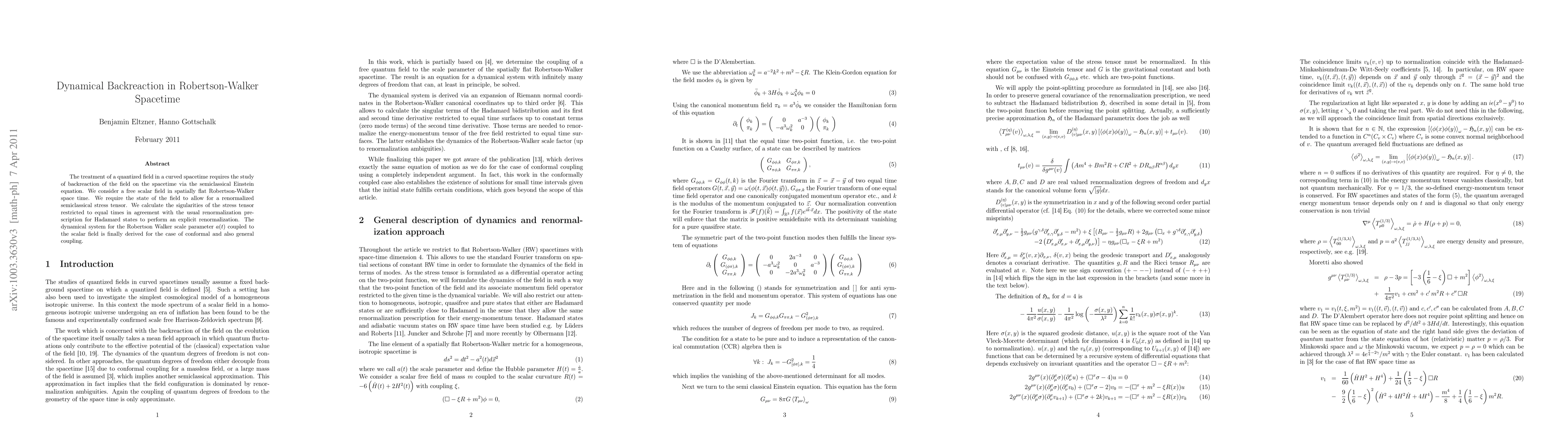This paper investigates the backreaction of a quantized scalar field on the curved Robertson-Walker spacetime, deriving the dynamical system for the scale parameter $a(t)$ under both conformal and general field couplings. It focuses on renormalizing the semiclassical stress tensor and identifying singularities in the context of Hadamard states.