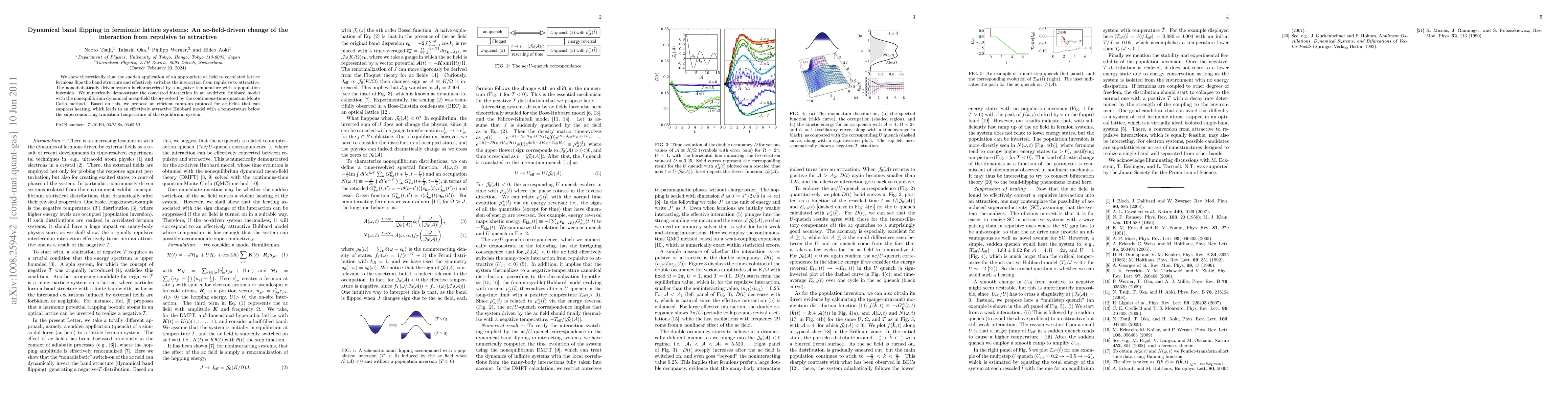 This paper theoretically demonstrates that applying an ac field to correlated lattice fermions can flip the band structure, changing the interaction from repulsive to attractive. Numerically, it shows this effect in an ac-driven Hubbard model using nonequilibrium dynamical mean-field theory, and proposes a ramp-up protocol for ac fields to achieve an effectively attractive interaction without heating.