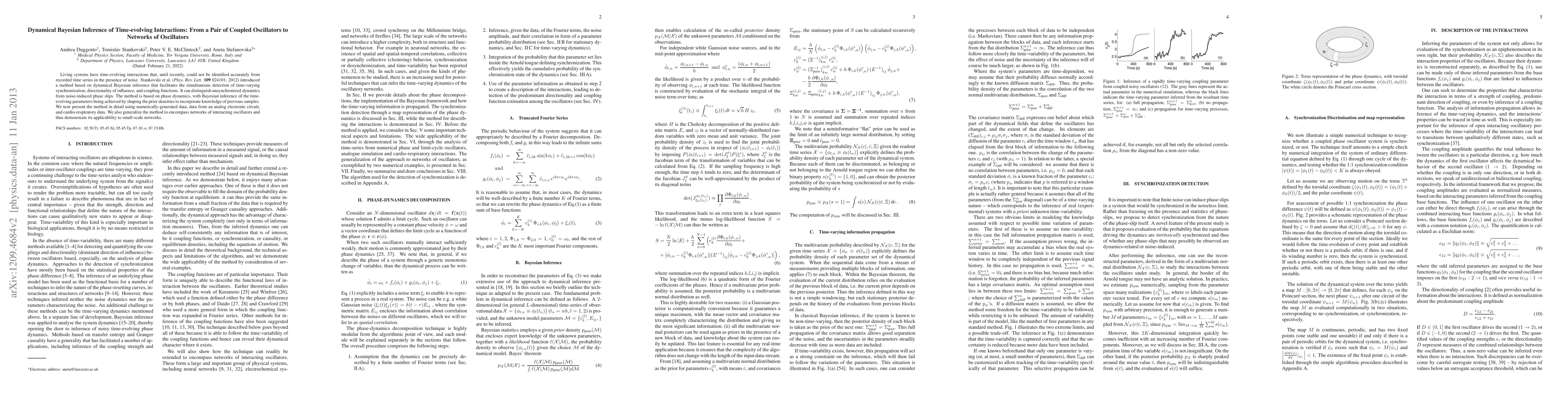This paper details a dynamical Bayesian inference method for identifying time-evolving interactions in systems with noisy time series data, initially applied to coupled oscillators and now extended to networks of oscillators. The method accurately detects synchronization, influence directionality, and coupling functions, distinguishing true dynamics from noise.