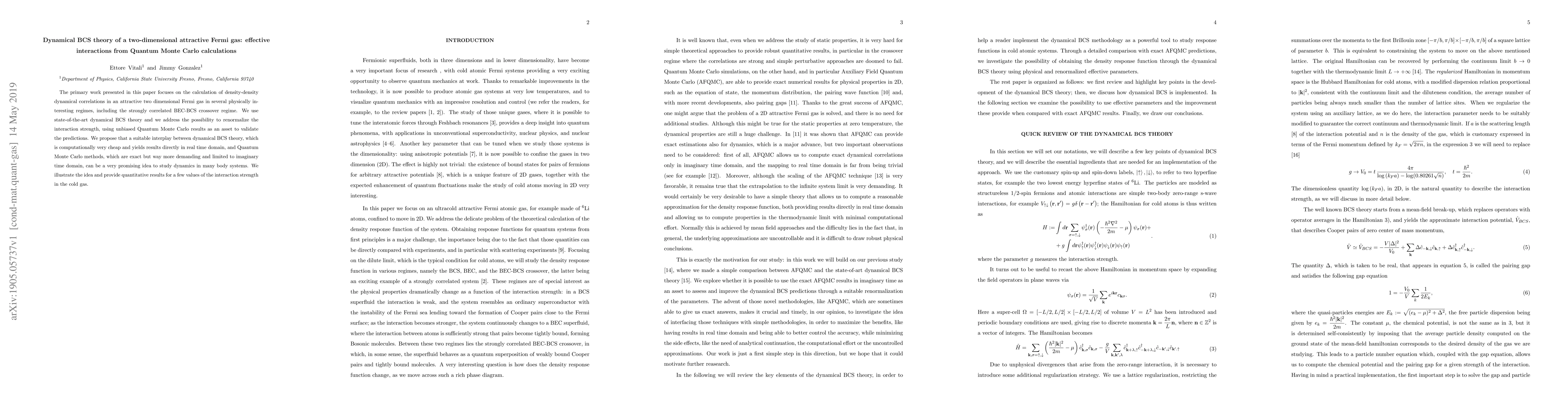 Researchers developed a new approach to study dynamics in two-dimensional Fermi gases using a combination of dynamical BCS theory and Quantum Monte Carlo methods, aiming to improve accuracy and efficiency in understanding complex many-body systems.