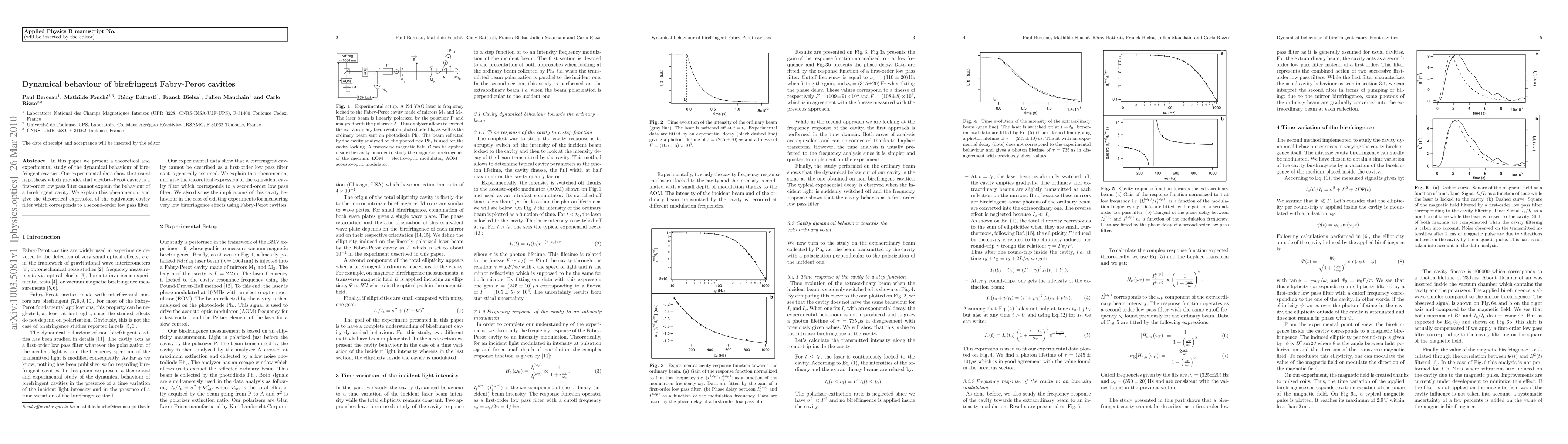 This paper investigates the dynamical behavior of birefringent Fabry-Perot cavities, revealing that traditional first-order low pass filter models do not adequately describe their behavior. The authors propose a second-order low pass filter model to better explain the observed phenomena.
