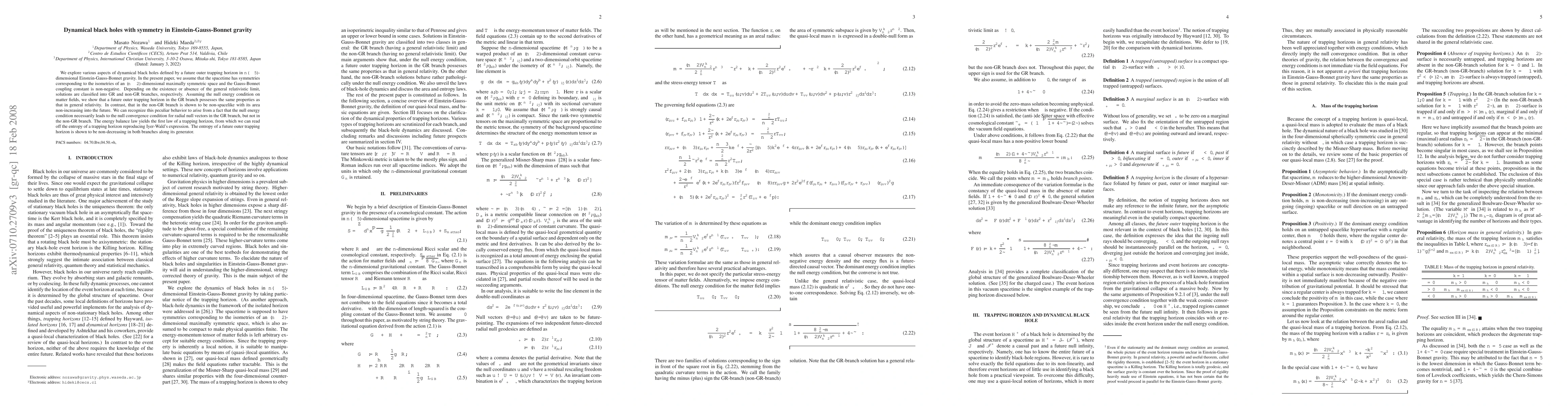 This research investigates dynamical black holes in n-dimensional Einstein-Gauss-Bonnet gravity with symmetries, classifying solutions into GR and non-GR branches. It shows that future outer trapping horizons in the GR branch behave like those in general relativity, while in the non-GR branch, they're non-spacelike with non-increasing area. The study derives the first law of trapping horizon and Iyer-Wald's entropy expression, proving non-decreasing entropy along generators in both branches.